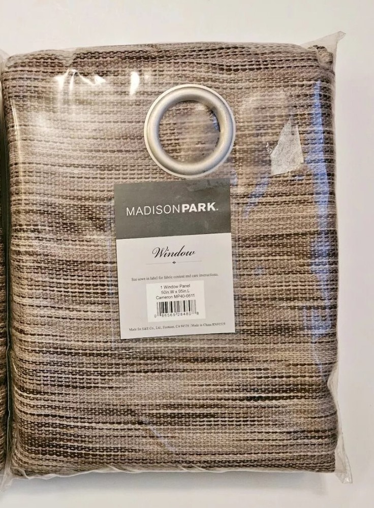 ONE Madison Park Cameron Yarn Dyed Texture Grommet Top Curtain Panel in MOCHA. 100% Polyester Yarn Dyed Woven For Natural Tonal Ombre Texture Design Light Luxe Sheen From Fabric Nature Antique Silver Grommet Top Finish Fits Up To 1.25 Inches In Diameter Not See Through And Offer Privacy Energy Efficient Level: Light Filtering Thanks for looking!