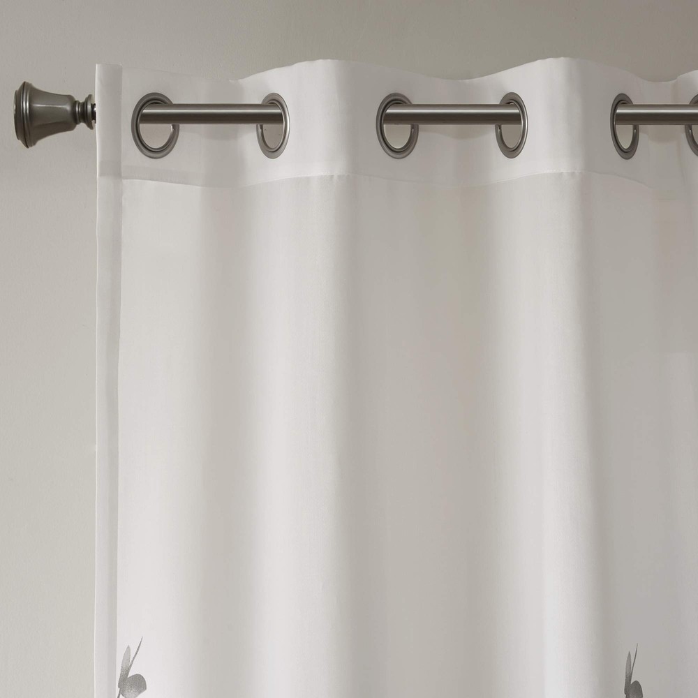 Transform any room with the beauty of our Madison Park Cecily Printed Window Panel. The gorgeous panel flaunts a stunning all over grey botanical design burned out for a dimensional and fresh update. Finished with silver grommet tops for easy hanging, this panel revitalizes your décor with its alluring design and modern color scheme. This window panel is also OEKO-TEX certified, meaning it does not contain any harmful substances or chemicals, ensuring quality comfort and wellness. Transform any room with the beauty of our Madison Park Cecily Printed Window Panel 65% Rayon 35% Polyester Burned out 1 Window Panel: 50"W x 84"L Machine washable