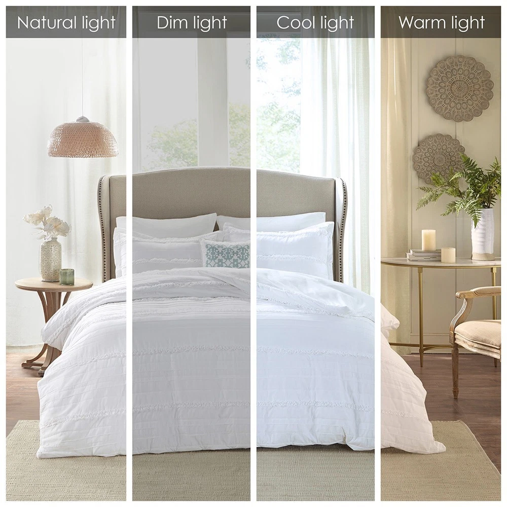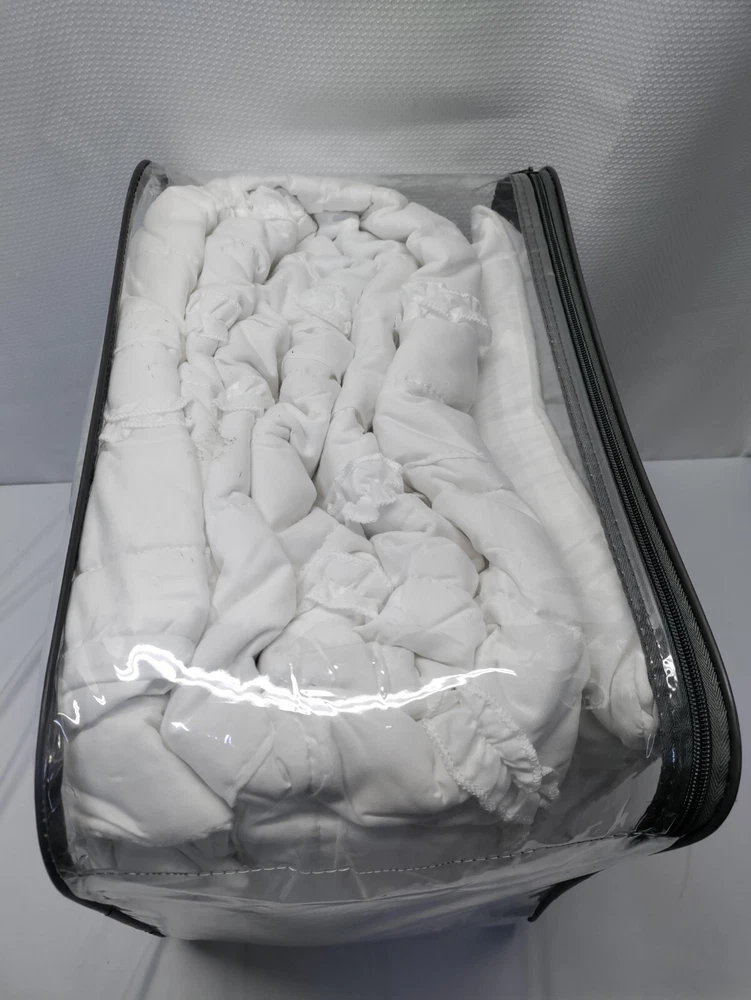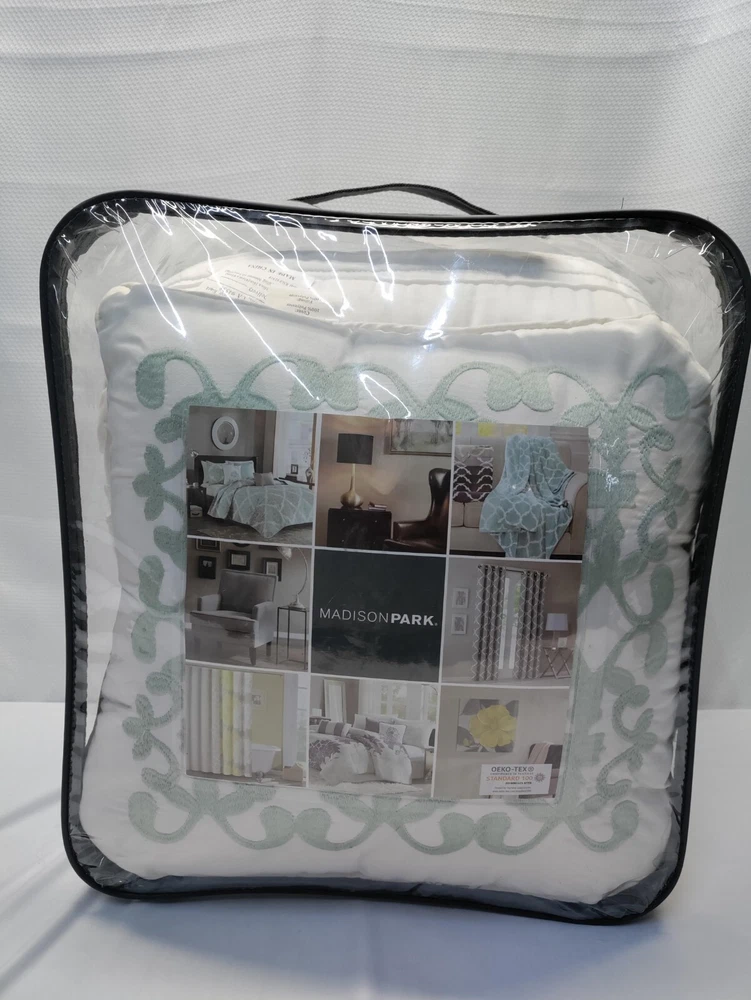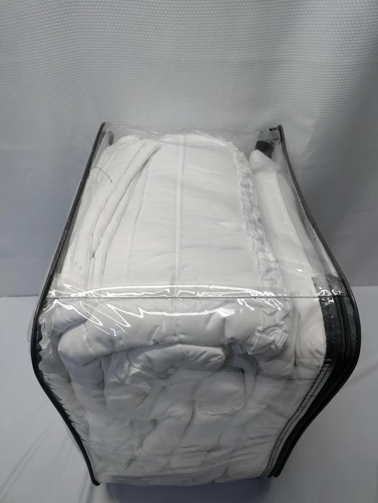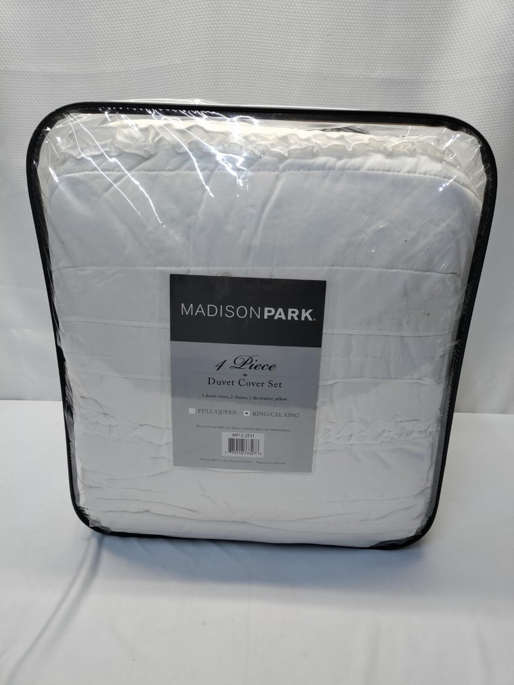 Madison Park Celeste King/Cal King 4 Piece 2-in-1 Duvet Set in White - MP12-253 Brand New In Package UPC : 675716733278 Description: Create a shabby chic look in your bedroom with the Madison Park Celeste Collection. The 2-in-1 duvet cover has a quilted top and button closure providing the option to use as a lightweight coverlet by simply buttoning up the bottom or fill with a comforter insert for a warmer option. A duvet cover is a protective cover for your comforter, most likely for your down comforter. Sometimes it’s referred to as a comforter cover. Duvet covers are not filled. It has an opening where you can insert your comforter. Filler not included. King/Cal King Size include: 1 Duvet Cover:104x92" 1 Decorative Pillow:16x16" 2 King Shams:20x36+2" Care Instruction: MACHINE WASH COLD, GENTLE CYCLE, AND SEPARATELY. DO NOT BLEACH. TUMBLE DRY LOW, REMOVE PROMPTLY, DO NOT IRON. IF THERE IS NO FREE MOVEMENT IN THE WASHER OR DRYER, USE LARGE CAPACITY COMMERCIAL WASHER/DRYER. PART OF A MAJOR RETAILER BUYOUT. PACKAGING MAY SHOW SIGNS OF SHELF WEAR HAVE MINOR DAMAGE OR BE DUSTY FROM STORAGE. ALL ITEMS ARE NEW UNLESS NOTED OTHERWISE.PLEASE SEE PICTURES FORBOX QUALITY OR PLEASE ASK FOR ADDITIONAL PHOTOS. WE WILL COMBINE SHIPPING IF YOU PURCHASE MORE THAN ONE ITEM FROM OUR STORE. ITEMS MUST BE PAID FOR IN THE SAME TRANSACTION TO SHIP TOGETHER AND BE COMBINED. S H I P P I N G & H A N D L I N G: Please note that Delivery Dates provided by eBay & the Shipping Carrier for Standard, Expedited & Overnight Shipping are only ESTIMATES, and are subject to variability. Once an item is dropped off with the Shipping Carrier, we are unable to control the speed of delivery, thus we cannot guarantee that a package will arrive on an exact date. Shipping estimates are best estimated using the guidelines provided below, as they are generated based on analysis of my extensive selling history. • For Shipping Purposes, Business Days are Monday-Friday 9am-12pm(Eastern Time) No shipments on Weekends & Holidays. • If another form of shipment is needed, (i.e –Overnight, Expedited,etc.) Buyer is Responsible U N S U C C E S S F U L SHIPPING In the case your item needs to be intercepted (I.E Incorrect Address) or the package is returned to us, due to UTF or RTS. BUYER IS RESPONSIBLE FOR SECOND SHIPMENT. You will be invoiced via PayPal ; PAYMENT IS DUE BEFORE SHIPPING OUT A 2ND TIME. O F F E R S Offers will be seen Sunday-Thursday from 9am to 6pm Eastern Standard Time Fridays from 9am - 4pm Eastern Standard Time ** EXCLUDING HOLIDAYS ** ** OFFERS WILL NOT BE SEEN / VIEWED ON SATURDAYS ** ( as we’re out of the office ) ALL Winning offers have 48 Business* hours to pay their invoices - Please see above for Hours of Business * After 48 Business hours, orders will be canceled and re-listed R E T U R N S In the case you ordered the incorrect Size, please message us prior to opening a return as we may be able to exchange for the size you need ALL Returns need to arrive in the exact condition it was shipped out in (New,Sealed,Etc.) ANY Item that has been tampered with, is subject to No Refund F E E D B A C K • We are committed to providing an easy, efficient & worry-free shopping experience and ensuring 100% customer satisfaction. • We will happily leave 5-Star Positive Feedback for our customers upon a successfully completed transaction. • Please be sure to leave us 5-Star Positive Feedback once you receive the item! If at any time during your purchasing process you feel you are not 100% satisfied, please contact us and,we will respond as soon as possible. JS Material Details: Duvet/Sham: 85gsm polyester microfiber, 180gsm 90% cotton, 10% other fiber filling, quilted, ruffle face Pillow: 100% polyester microfiber cover, polyester filling