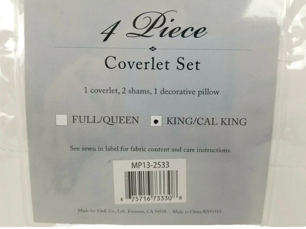 About This Item: New with tags 1 x King Comforter Coverlet 2 X King Shams 1x Decorative Pillow Fast free shipping to the continental U.S. Will be packaged in frustration free packaging and shipped with care from a pet/smoke free environment! Thanks for supporting our small business! 2E