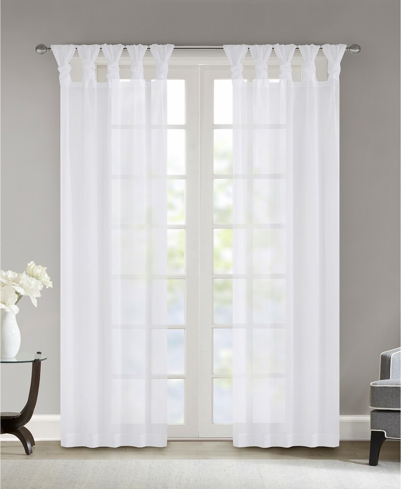 Madison Park Ceres 50" x 84" Twisted Tab Top Sheer Curtain Set T4101398 Soften your space with the Ceres window pair from Madison Park. This window pair provides a simple and airy update to your decor, with its lightweight voile sheer fabric and a weighted hem for providing easy draping and movement. The twist tab top creates beautiful and delicate folds for a stylish touch. Dimensions: 50" x 84" Fits up to 1.25" diameter rod Polyester Machine washable Imported