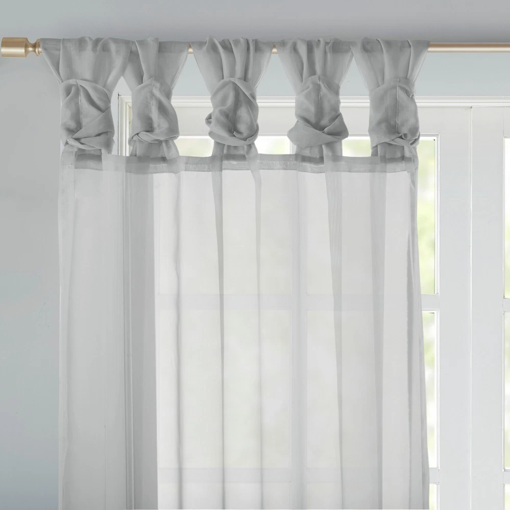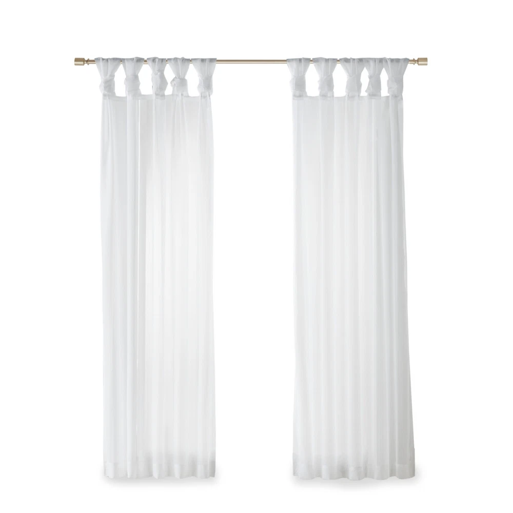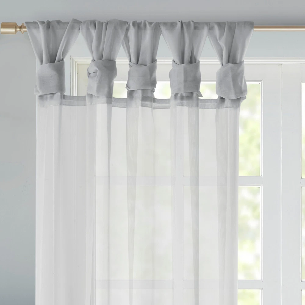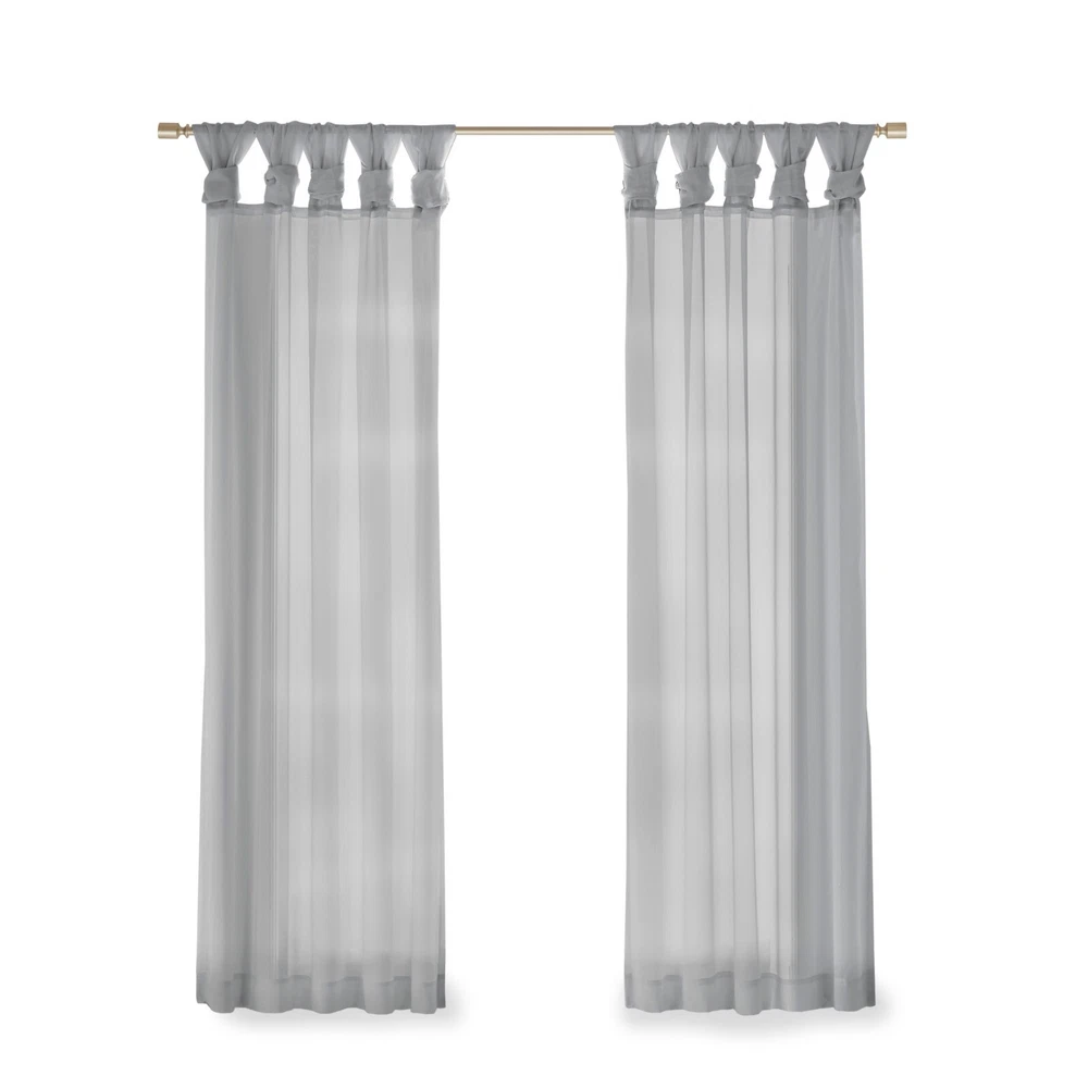 Store Categories Store Categories Bedding Comforters Decorative Pillows Duvet Covers Quilts & Coverlets Sheets Blankets & Throws Mattress Pads Pillows Home Decor Window Treatments Wall Art Home Accents Furniture Beds Dining Seating Ottomans & Benches Accent Chairs Accent Tables Dining Tables Sofas Bath Bath Robes Shower Curtains Towels Bath Rugs Bath Accessories Apparel Pajama Sets Nightgowns Rugs Rugs & Carpets Lighting Lamp Pendant Other Product Overview Details DESCRIPTION Soften your space with the Madison Park Ceres Twisted Tab Voile Sheer Window Pair. This soft panel pair provides a simple and airy update to your decor, with its lightweight voile sheer base and delicate color palette for the perfect ethereal touch. The DIY twist tab top creates beautiful and delicate folds for a stylish decorator's touch. This window panel is also OEKO-TEX certified, meaning it does not contain any harmful substances or chemicals, ensuring quality comfort and wellness. Machine washable and easy to hang, open, and close throughout the day and fits up to a 1.25" diameter rod. This window panel pair is perfect on its own for a soft filter or layer with others for a dramatic effect. FEATURES • Twisted tab DIY top finish window curtain pair • Light weight solid voile sheer home décor • Set of 2, each panel measures 50" wide • Use it alone or pair with another curtain panels • Oeko-Tex Certified, includes no harmful substances or chemicals • Machine washable MATERIAL 100% Polyester CARE INSTRUCTIONS Machine Washable Available Sizes (In Inches) 63" Panel Size: Includes 2 Window Sheers measuring 50"W x 63"L. 84" Panel Size: Includes 2 Window Sheers measuring 50"W x 84"L. 95" Panel Size: Includes 2 Window Sheers measuring 50"W x 95"L. Bedding Comforters Decorative Pillows Duvet Covers Quilts & Coverlets Sheets Blankets & Throws Mattress Pads Pillows Home Decor Window Treatments Wall Art Home Accents Furniture Beds Dining Seating Ottomans & Benches Accent Chairs Accent Tables Dining Tables Sofas Bath Bath Robes Shower Curtains Towels Bath Rugs Bath Accessories Rugs Rugs & Carpets Lighting Lamp Pendant Product Overview Product Details DESCRIPTION Soften your space with the Madison Park Ceres Twisted Tab Voile Sheer Window Pair. This soft panel pair provides a simple and airy update to your decor, with its lightweight voile sheer base and delicate color palette for the perfect ethereal touch. The DIY twist tab top creates beautiful and delicate folds for a stylish decorator's touch. This window panel is also OEKO-TEX certified, meaning it does not contain any harmful substances or chemicals, ensuring quality comfort and wellness. Machine washable and easy to hang, open, and close throughout the day and fits up to a 1.25" diameter rod. This window panel pair is perfect on its own for a soft filter or layer with others for a dramatic effect. FEATURES • Twisted tab DIY top finish window curtain pair • Light weight solid voile sheer home décor • Set of 2, each panel measures 50" wide • Use it alone or pair with another curtain panels • Oeko-Tex Certified, includes no harmful substances or chemicals • Machine washable MATERIAL 100% Polyester CARE INSTRUCTIONS Machine Washable Available Sizes (In Inches) 63" Panel Size: Includes 2 Window Sheers measuring 50"W x 63"L. 84" Panel Size: Includes 2 Window Sheers measuring 50"W x 84"L. 95" Panel Size: Includes 2 Window Sheers measuring 50"W x 95"L.