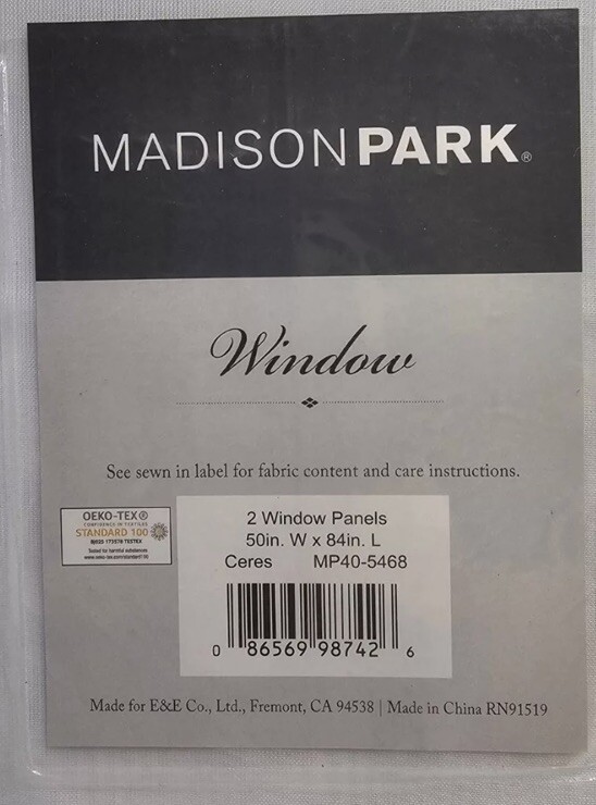 Madison Park Ceres Twisted Tab Panel Sheer Curtain Set 50" x 84" White 2 Panels. Condition is New. Shipped with USPS Ground Advantage.