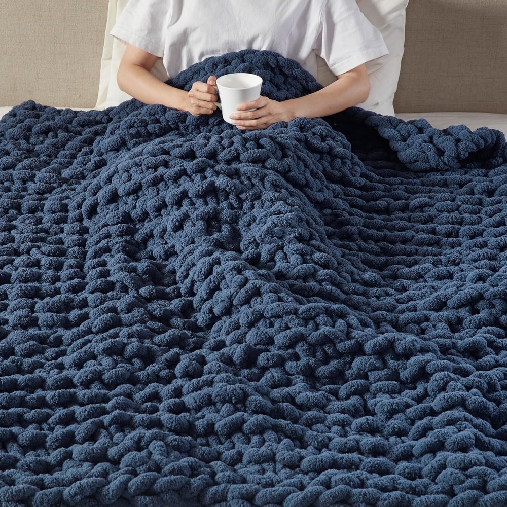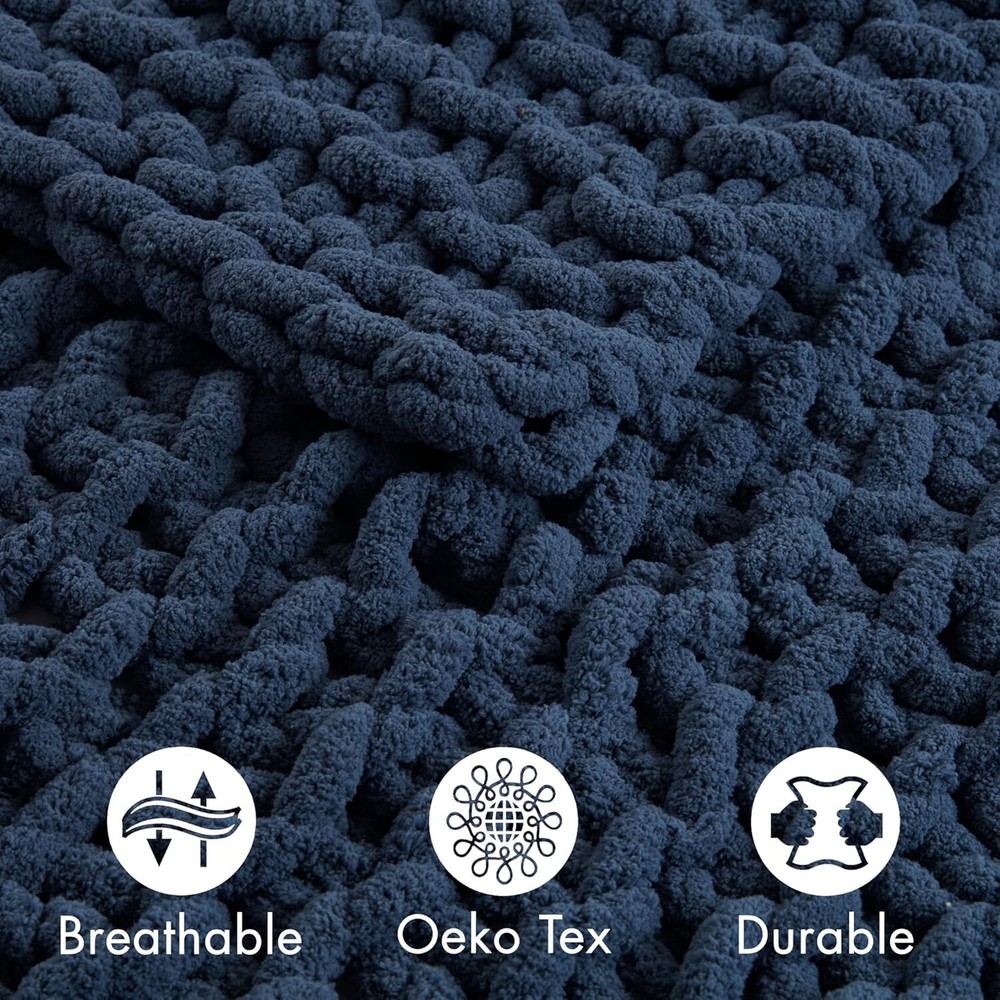 Material Polyester Color Navy Blue Brand Madison Park Special Feature Lightweight, Gift Ready Style Casual About this item 100% Polyester Chenille Indulge in pure comfort by wrapping yourself in the Madison Park Chenille Chunky Knit Throw This chunky knit throw is handmade from luxurious chenille yarn to create a soft and cozy feel that's perfect to snuggle up in OEKO-TEX certified, meaning it does not contain any harmful substances or chemicals to ensure quality comfort and wellness Perfect Gift Idea for Any Occasion – birthdays, Valentine's Day, Mother's Day, or Christmas – celebrate yourself or that special someone with everlasting warmth and affection. Compact and well-packaged. Set includes: 1 Throw: 50"W x 60"L Care Instructions: Spot Clean