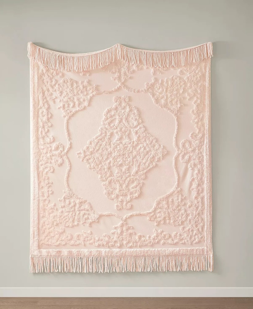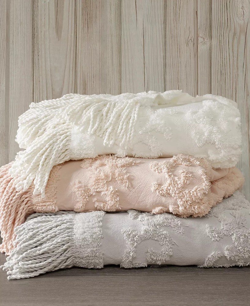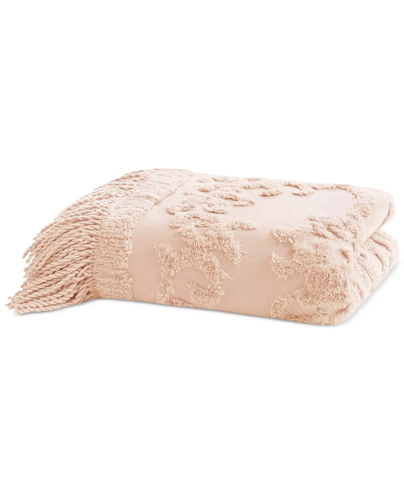 Color: Blush Size: 50" x 60" Material: 100% Cotton Bring some fresh boho-chic style to your bedroom and beyond with the elegant tufted-chenille design and flouncy fringe trim of this Chloe cotton throw from Madison Park. Dimensions: 50" x 60" The Textured Throw featured on The It List Fabric: all cotton Machine washable Imported