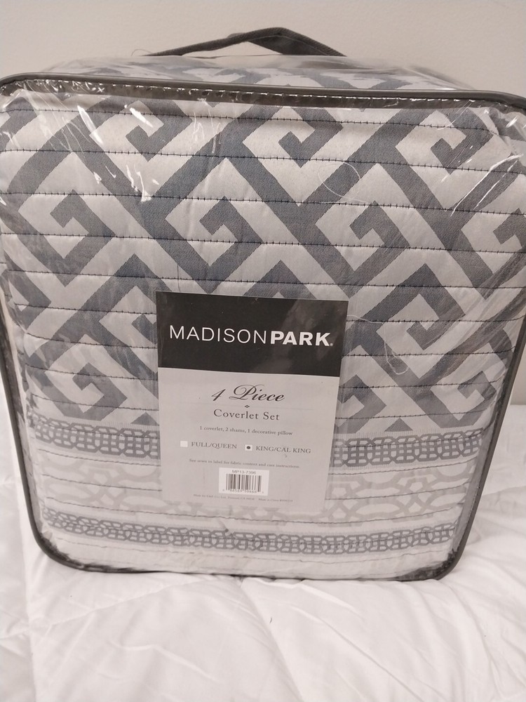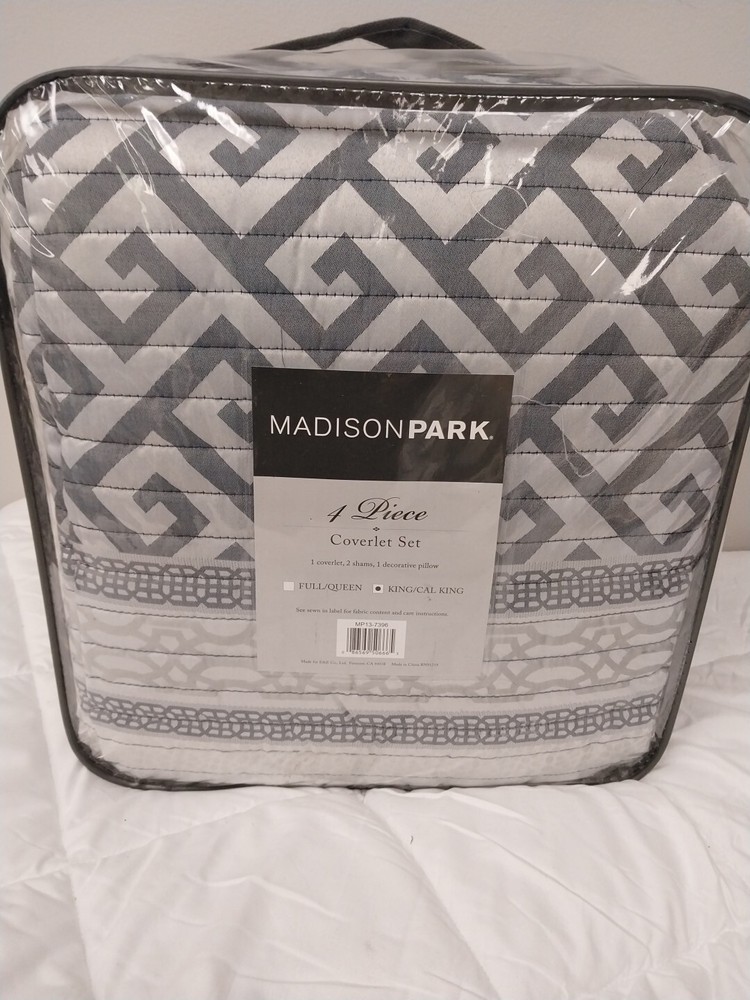 The Madison Park Christian 4-Piece Reversible Jacquard Coverlet Set provides an elegant and luxurious update for your bedroom. This jacquard reversible coverlet features a navy and grey striped design with several geometric prints to create an updated traditional look. The solid navy reverse complements the top of the bed, while 2 matching shams mirror the design of the coverlet creating a sharp coordinated look. Also included is a square decorative pillow provides the finishing touch to the jacquard quilt cover set. Machine washable for easy care, this reversible coverlet set brings a refined traditional allure to your bedroom that's perfect for summer or as an added layer in the winter. Size: All