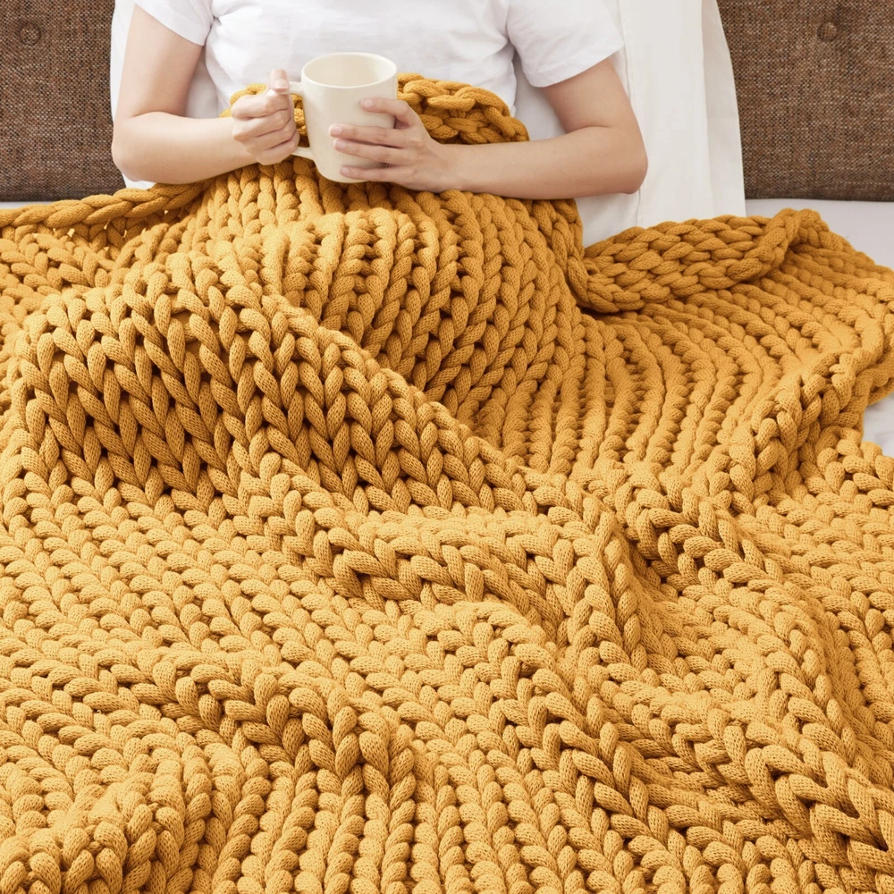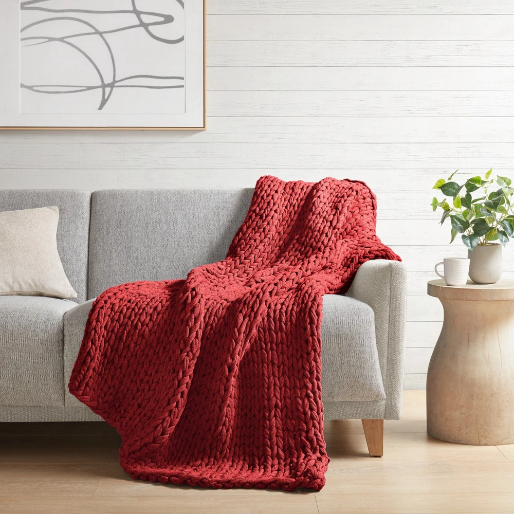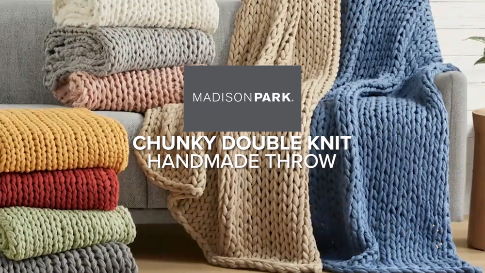 Store Categories Store Categories Bedding Comforters Decorative Pillows Duvet Covers Quilts & Coverlets Sheets Blankets & Throws Mattress Pads Pillows Home Decor Window Treatments Wall Art Home Accents Furniture Beds Dining Seating Ottomans & Benches Accent Chairs Accent Tables Dining Tables Sofas Bath Bath Robes Shower Curtains Towels Bath Rugs Bath Accessories Apparel Pajama Sets Nightgowns Rugs Rugs & Carpets Lighting Lamp Pendant Other Product Overview Details DESCRIPTION Snuggle up and get cozy with the Madison Park Chunky Double Knit handmade throw. This chunky throw is double-knitted for durability, breathability and an incredibly soft hand feel, while the handmade nature makes it the perfect piece to complement any decor. This throw is also OEKO-TEX labeled textile certified, meaning it is safe on skin. Spot clean only. FEATURES • Handmade chunky knit throw • Double knitted for durability • Soft hand feel for comfort • Spot clean • OEKO-TEX labeled textile certified as safe on skin MATERIAL 100% Acrylic Available Sizes: 1 Throw: 50"W x 60"L Bedding Comforters Decorative Pillows Duvet Covers Quilts & Coverlets Sheets Blankets & Throws Mattress Pads Pillows Home Decor Window Treatments Wall Art Home Accents Furniture Beds Dining Seating Ottomans & Benches Accent Chairs Accent Tables Dining Tables Sofas Bath Bath Robes Shower Curtains Towels Bath Rugs Bath Accessories Rugs Rugs & Carpets Lighting Lamp Pendant Product Overview Product Details DESCRIPTION Snuggle up and get cozy with the Madison Park Chunky Double Knit handmade throw. This chunky throw is double-knitted for durability, breathability and an incredibly soft hand feel, while the handmade nature makes it the perfect piece to complement any decor. This throw is also OEKO-TEX labeled textile certified, meaning it is safe on skin. Spot clean only. FEATURES • Handmade chunky knit throw • Double knitted for durability • Soft hand feel for comfort • Spot clean • OEKO-TEX labeled textile certified as safe on skin MATERIAL 100% Acrylic Available Sizes: 1 Throw: 50"W x 60"L