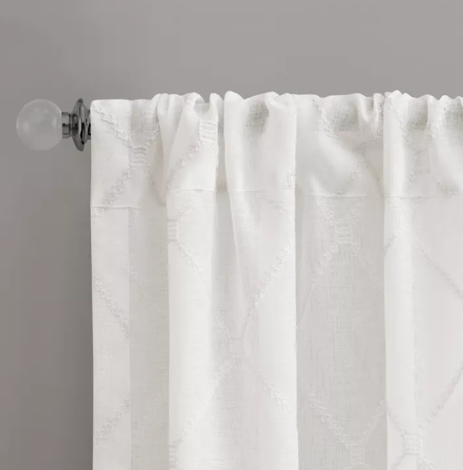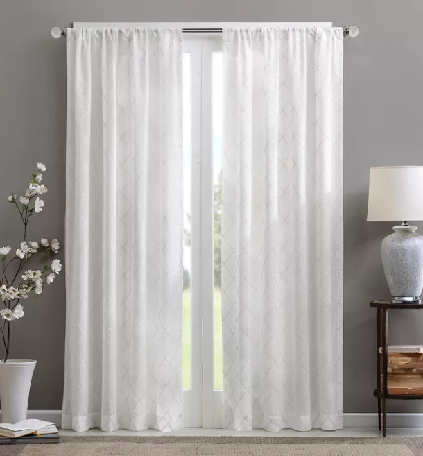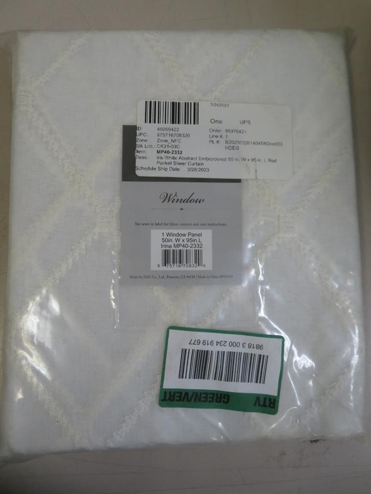 Highlights Lightweight sheer base fabric All over contrast diamond embroidery design Extra wide length for more coverage Machine wash cold Description Our Clarissa Diamond Sheer Window Curtain provides an alluring update to your home. A bold diamond pattern is embroidered on a sheer fabric, creating contrast for a fresh and modern take on a classic sheer.(This also has one extra wide width panel(100x84") will work great for longer windows or patio doors, perfect for filtering the perfect amount of light into your space). Hang this sheer window curtain using the rod pocket for a simple finish. Fits up to a 1.25" diameter rod. We will be happy to answer any questions or provide more information, just click "ask a question" at the bottom of the page. Thanks! Madison Park Clarissa Diamond Sheer Curtain Panel 50" W x 95" L White Madison Park Clarissa Diamond Sheer Curtain Panel 50" W x 95" L White Click images to enlarge Description Highlights Lightweight sheer base fabric All over contrast diamond embroidery design Extra wide length for more coverage Machine wash cold Description Our Clarissa Diamond Sheer Window Curtain provides an alluring update to your home. A bold diamond pattern is embroidered on a sheer fabric, creating contrast for a fresh and modern take on a classic sheer.(This also has one extra wide width panel(100x84") will work great for longer windows or patio doors, perfect for filtering the perfect amount of light into your space). Hang this sheer window curtain using the rod pocket for a simple finish. Fits up to a 1.25" diameter rod. We will be happy to answer any questions or provide more information, just click "ask a question" at the bottom of the page. Thanks! Get images that make Supersized seem small. Showcase your items with Auctiva's Listing Templates! THE simple solution for eBay sellers. Track Page Views With Auctiva's Counter