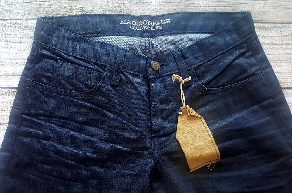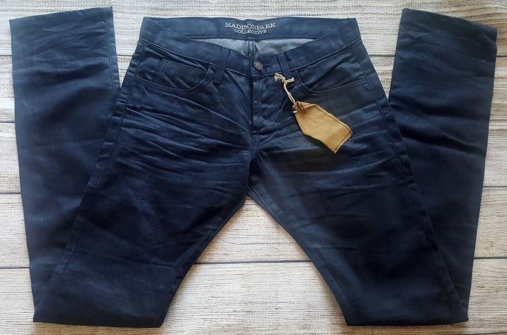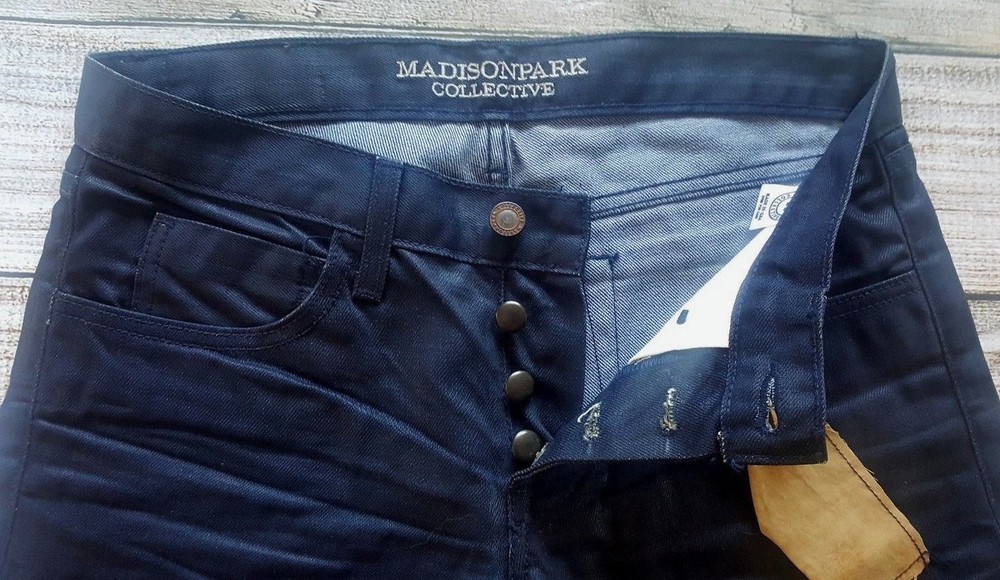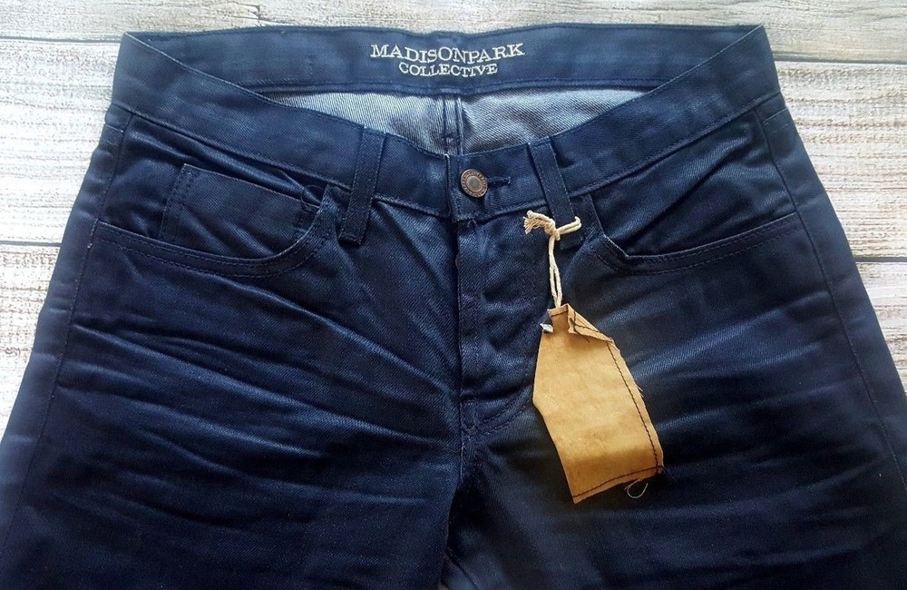 Madison Park Collective Miles Mens Blue Denim Jeans Size 28 X 33 Size : 28 X 33 Button Fly Brand New With Tag - 100 % Authentic - Please View Pictures for Better Description