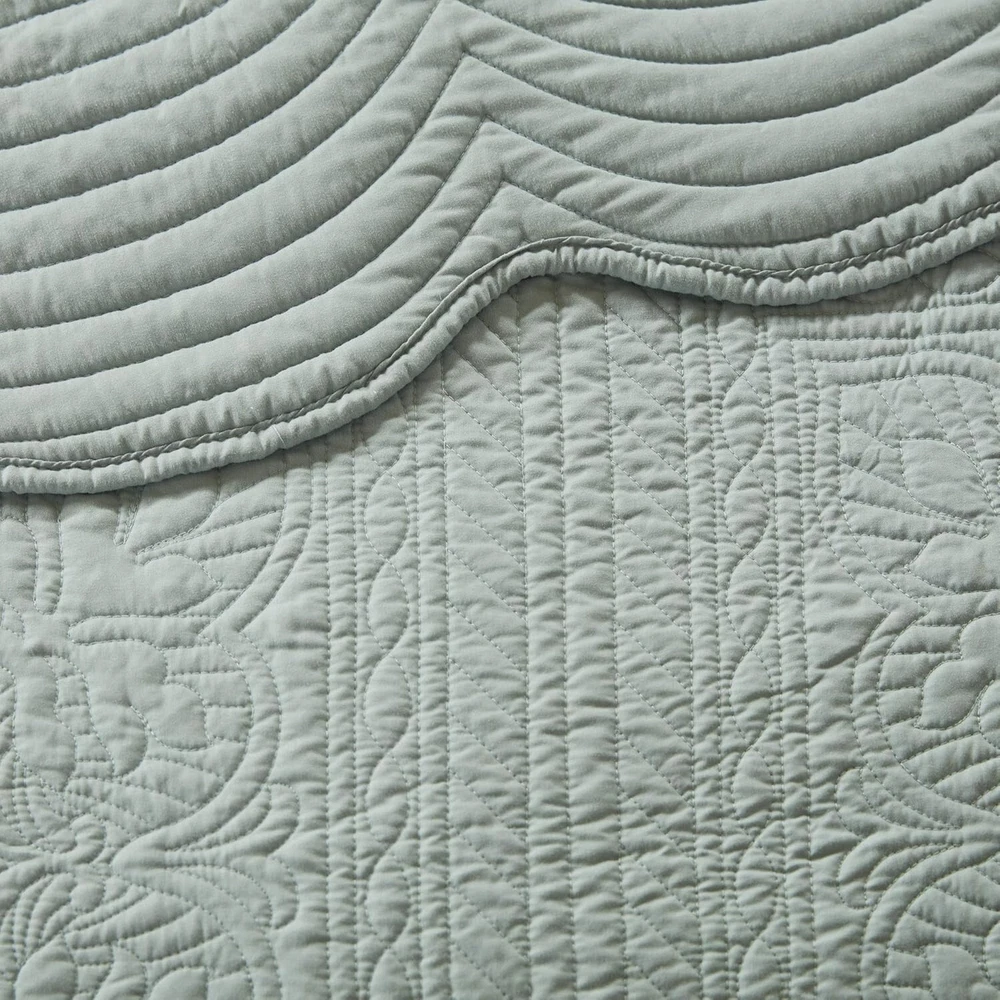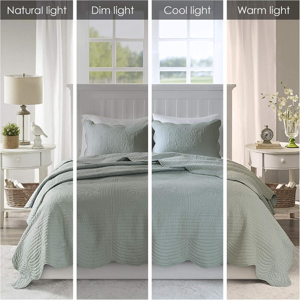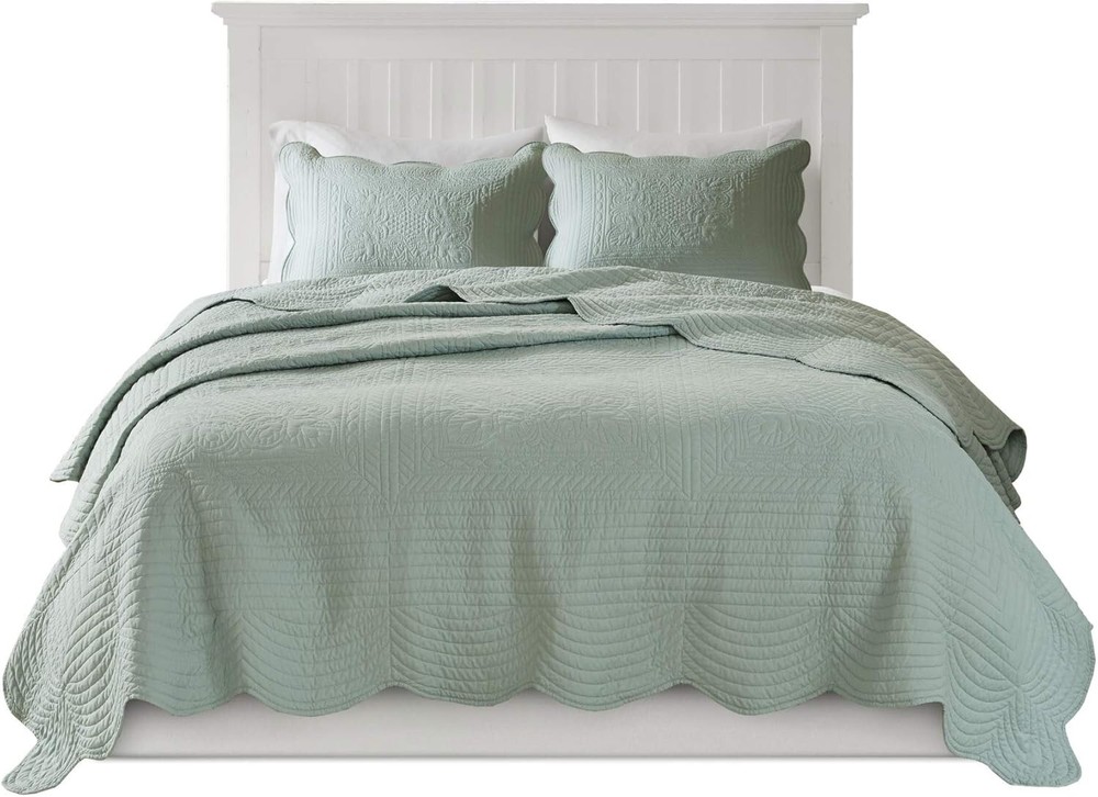 ***Item Description:*** 100% Microfiber The Madison Park Tuscany 3 Piece Reversible Scalloped Edge Coverlet Set is perfect as a layering piece or as an alternative to your comforter for a charming country look. The coverlet and shams flaunt a classic stitch pattern with scalloped edges that add an elegant touch to your bedroom. This reversible coverlet is filled with cotton filling keeping the fabric fresher, longer. Set includes: 1 Coverlet: 94"W x 96"L, 2 Standard Shams: 20"W x 26"L Care instructions: Machine washable