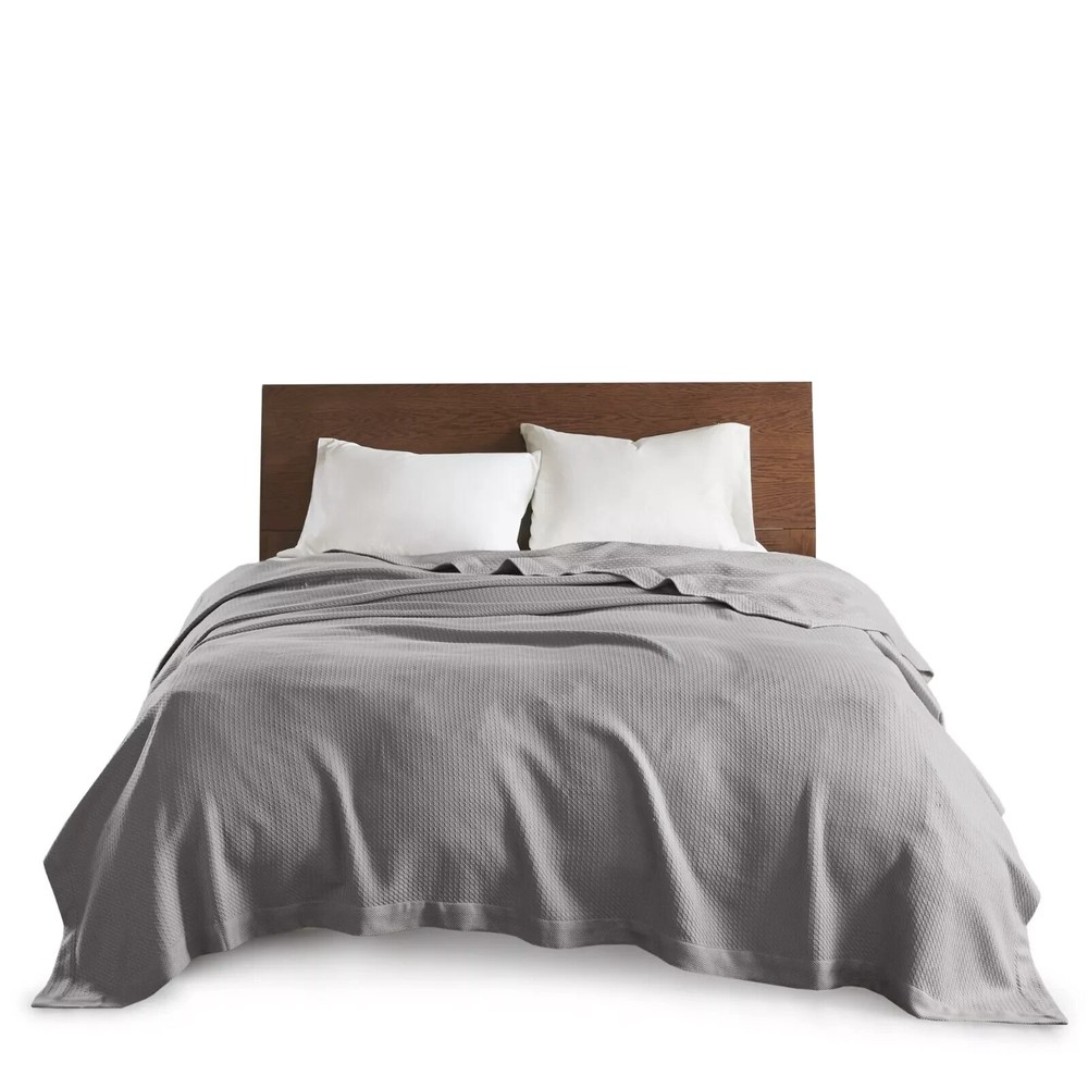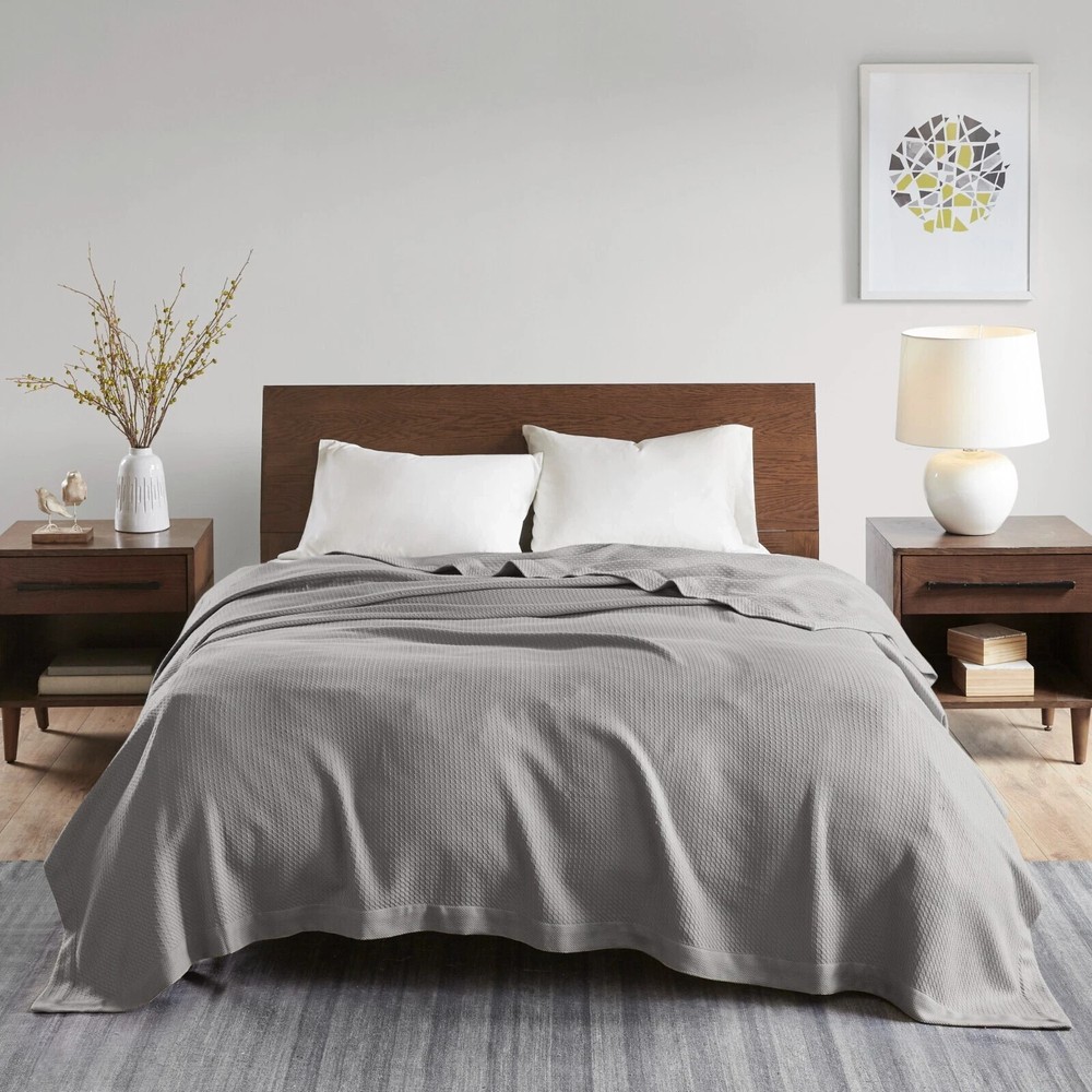 DESCRIPTION Wrap yourself up in the luxurious comfort of the Madison Park Egyptian Cotton Blanket. This ultra-soft white blanket in made from 100% certified Egyptian cotton that features reduced shrinkage, pilling, and snagging, for a durable and comfortable feel. The solid pattern of the blanket makes it easy to match with your existing casual décor. Machine washable this Egyptian cotton blanket is perfect for lying across your bed or sofa to keep warm and cozy all year round. FEATURES • Certified Genuine Egyptian Cotton bedding blanket • Soft, tightly woven blanket for reduced pilling and snagging • Breathable weave for warm nights • Machine washable for easy care • Oeko-Tex Certified, includes no harmful substances or chemicals MATERIAL 100% Certified Egyptian Cotton Available Sizes: Full/Queen Size Blanket: 90"W x 90"L