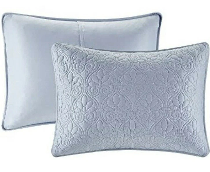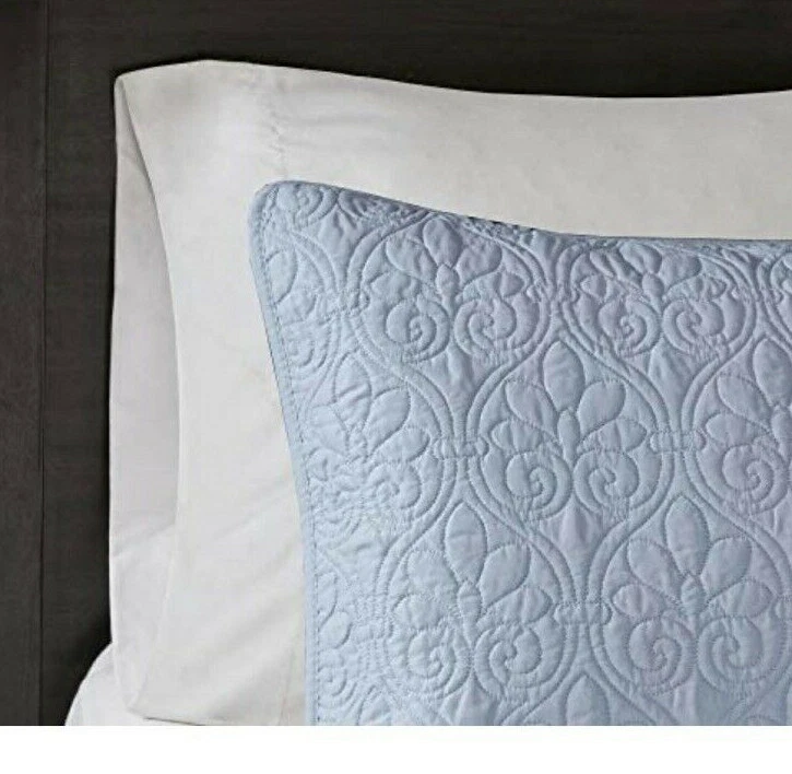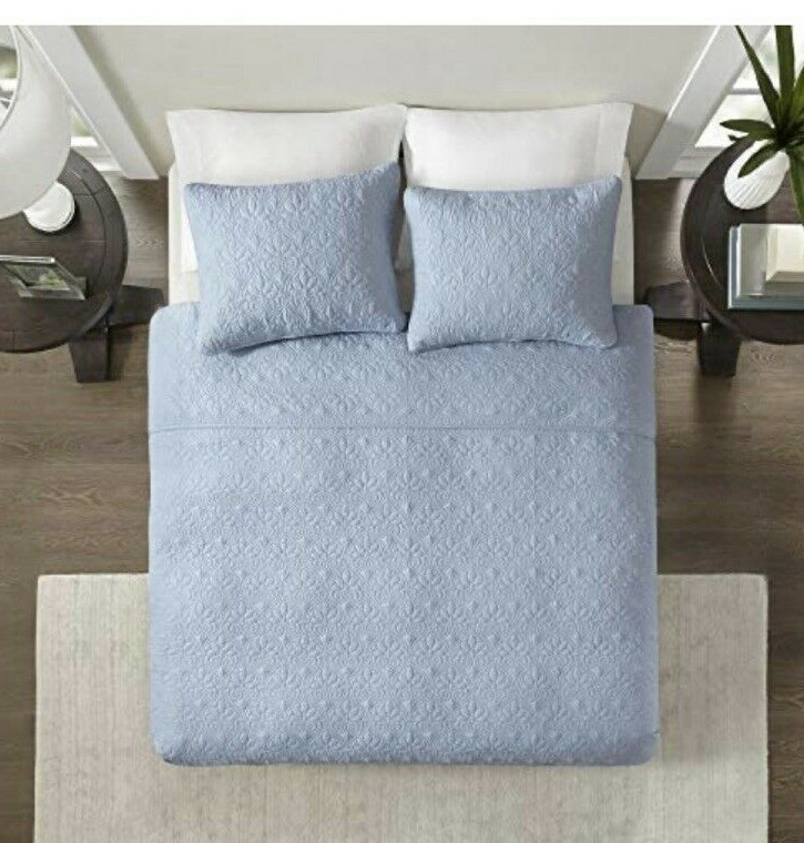 new in packaging MADISON PARK FULL / QUEEN COVERLET SET 100% polyester blue coverlet approx 90" x 90" shams approx 20" x 26"