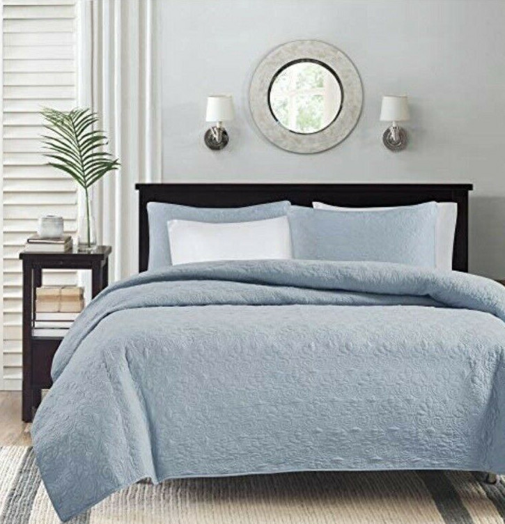 new in packaging MADISON PARK FULL / QUEEN COVERLET SET 100% polyester blue coverlet approx 90" x 90" shams approx 20" x 26"...