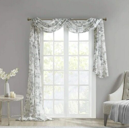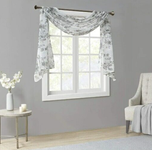 This is one new scarf panel Sheer gray and white floral 42 W x 144 L inches Visit my shop for a larger selection Thank you!...