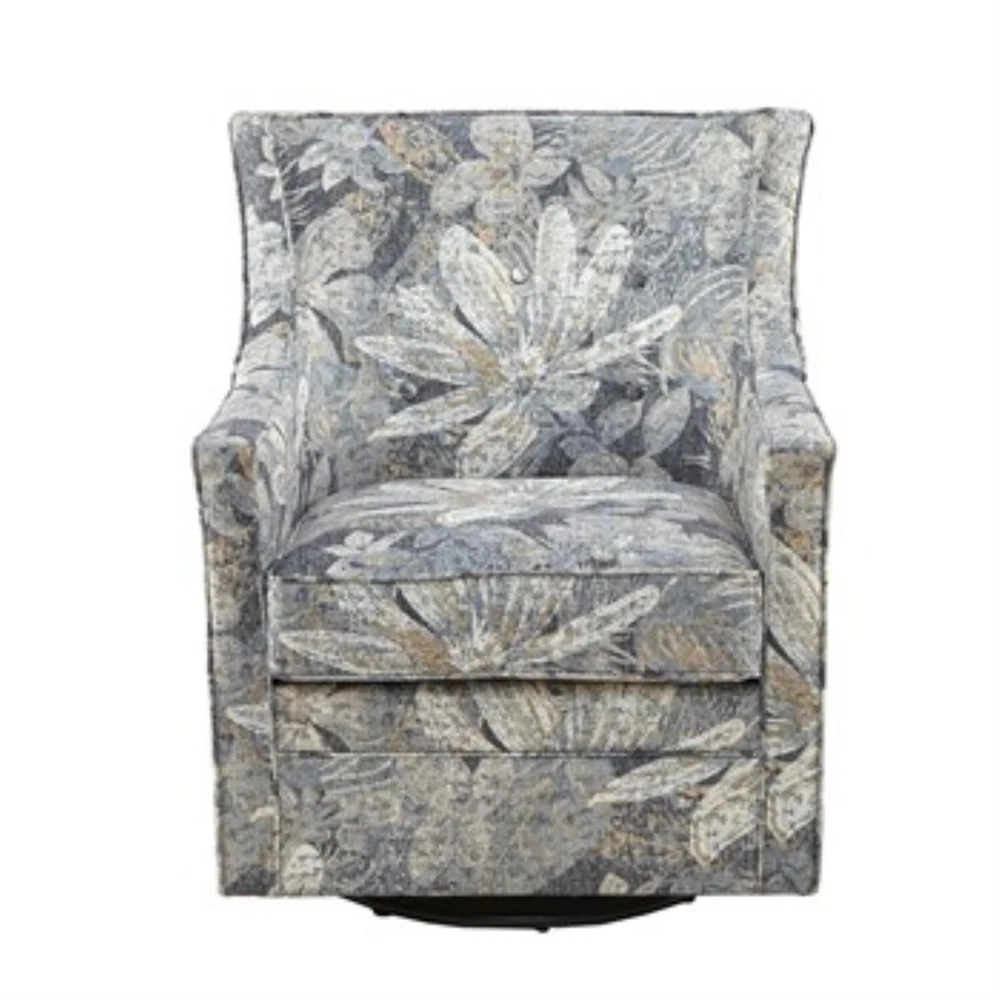 Specifications Number of Pieces: 1 Seats up to: 1 Dimensions (Overall): 34 Inches (H) x 28.5 Inches (W) x 32 Inches (D) Seat Dimensions: 21 Inches [W], 20.5 Inches [D], & 18.75 Inches [floor to seat top] Seat Back Dimensions: 15.25 Inches (H) x 24.5 Inches (W) Weight: 61.53 Pounds Holds up to: 300 Pounds Material: Wood, Metal (Frame) Finish: No Surface Treatment Features: Swivels Textile Material: 100% Polyester Metal Finish: Silver Upholstery: Upholstered Assembly Details: No Assembly Required Care & Cleaning: Spot or Wipe Clean