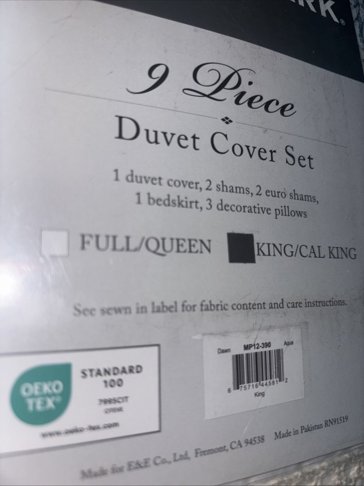 Elevate your bedroom decor with the Madison Park Dawn 9 Piece Cotton Percale Print Duvet Cover Set in King size. The set includes a bed skirt, pillow sham, and duvet cover adorned with a beautiful paisley pattern in aqua color, adding a touch of cottage style to your room. The set is made of a hypoallergenic blend of 100% polyester fill and cotton material, ensuring comfort and ease of care with machine wash instructions. This all-season duvet cover set from Madison Park is perfect for teens, adults, and kids. The set is not only stylish but also functional with its varied dimensions, making it suitable for any bedroom. Add a touch of elegance to your room with the Madison Park Dawn duvet cover set, and enjoy its comfort and durability.
