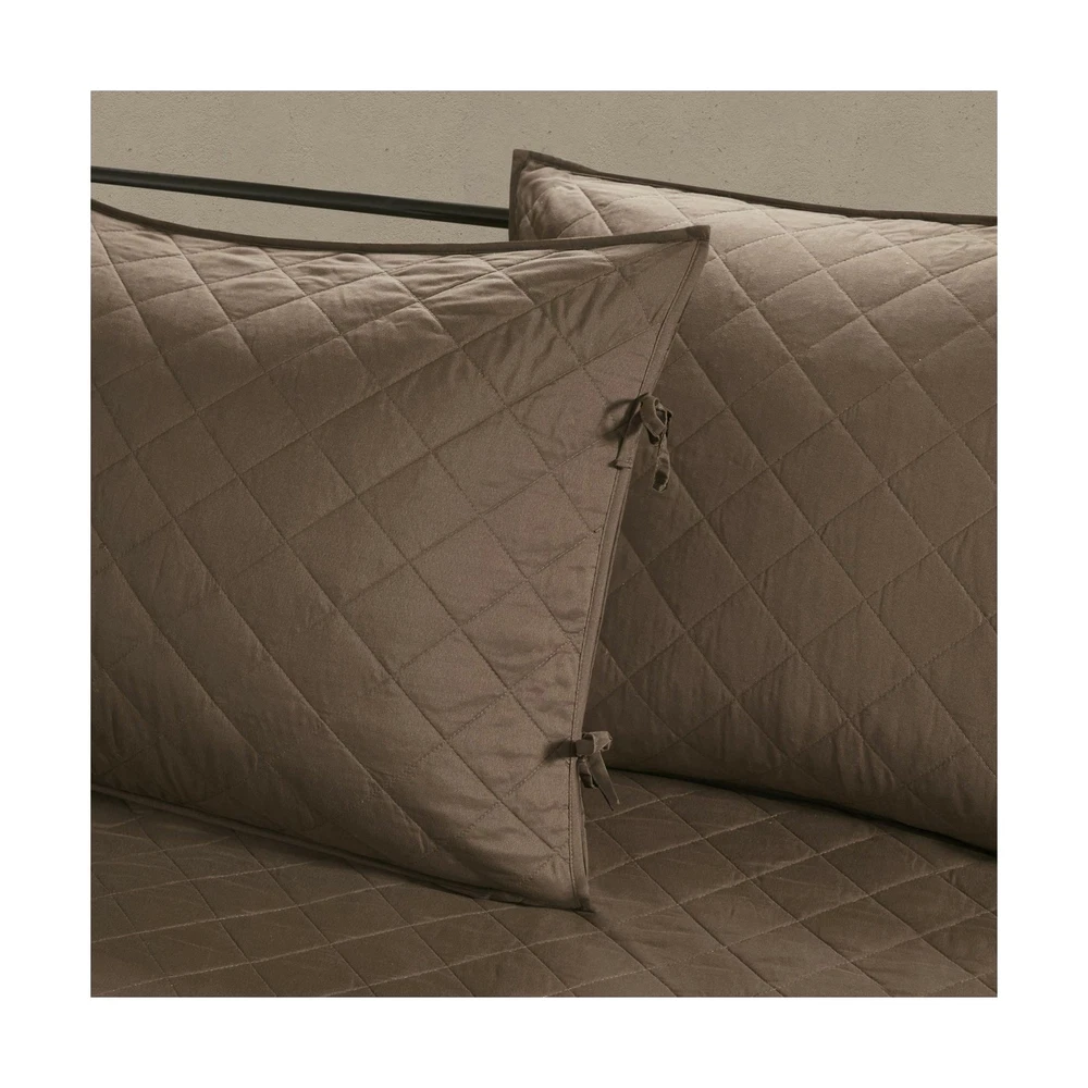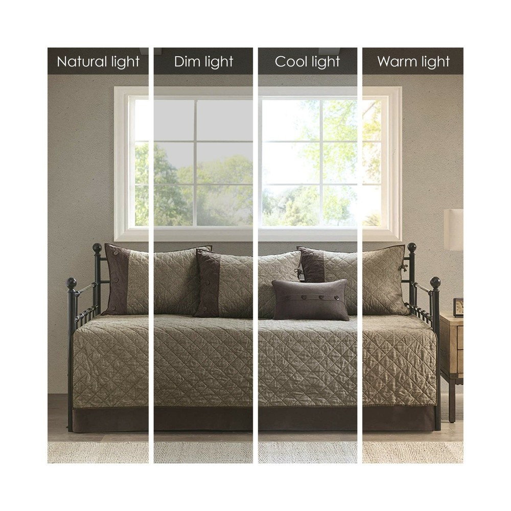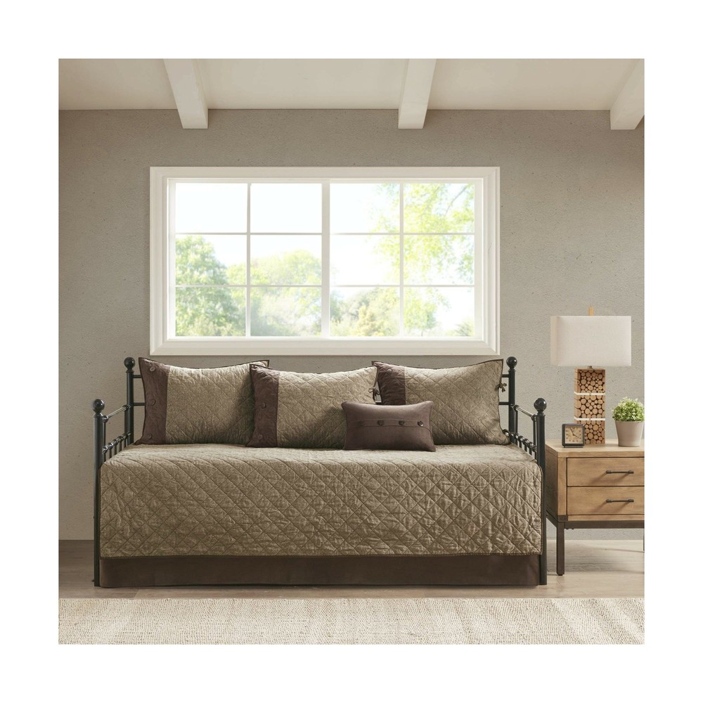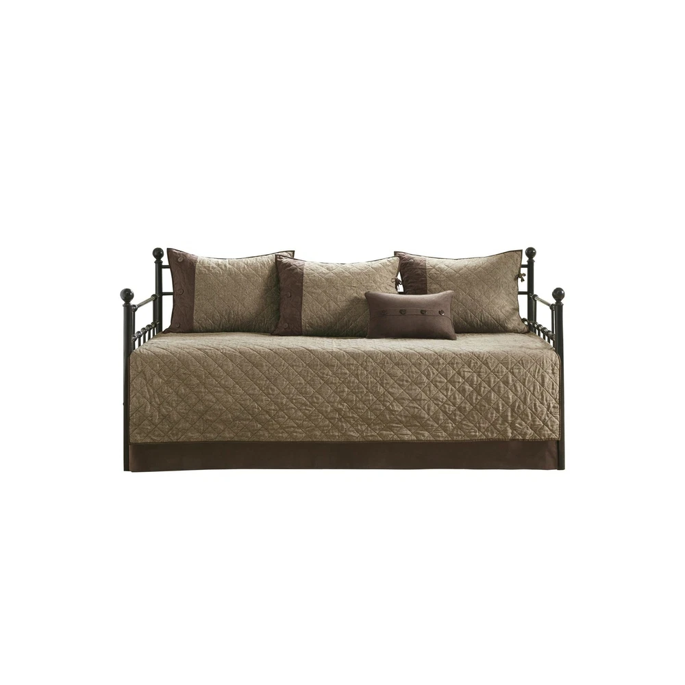 Brand New Madison Park Daybed Cover Set-Trendy Design All Season Luxury Bedding with Bedskirt, Matching Shams, Decorative Pillow, 75"x39", Boone, Diamond Quilted Faux Suede Reversible Brown 6 Piece Manufacturer model: MP13-6572 100% Microfiber Create a cozy cabin allure in your guest room with the Madison Park Boone 6 Piece Reversible Daybed Cover Set. The daybed cover features diamond quilting and faux suede with cotton-rich filling for a sophisticated rustic aesthetic. Faux suede finish gives a very soft feel and naturally resists stain. Set includes: 1 Daybed Cover: 75"W x 39"L, 3 Standard Shams: 20"W x 26"L, 1 Bed Skirt: 39"W x 75"L + 15"D, 1 Decorative Pillow: 12"W x 18"L Care instructions: Machine wash cold, gentle cycle, and separately. Do not bleach. Tumble dry low, remove promptly. Do not iron. Spot clean pillows. If there is no free movement in the washer or dryer, use large capacity commercial washer/dryer. Description Create a cozy cabin allure in your guest room with the Madison Park Boone 6 Piece Reversible Daybed Cover Set. The daybed cover features diamond quilting and faux suede with cotton-rich filling for a sophisticated rustic aesthetic. Three matching shams mirror the design of the daybed cover, while an oblong pillow and solid brown bedskirt with a 15-inch drop add the finishing touches. Machine washable for easy care, this reversible daybed cover set give your guest room a comfortable and rich cabin aesthetic. Shipping and Handling Please allow 5-7 business days for the package to arrive, regardless of buyer location within the US. We will provide an online tracking number to you once the item has been shipped. It may take a few business days for our automated system to process the tracking number onto eBay. However, this will not affect the shipping times. Return Policy All our products are brand new and sealed. All items qualify for returns within 30 days of receipt. Feedback We take our reputation seriously. If you have any questions or concerns, please contact us and we will respond back to your message within 24 hours.