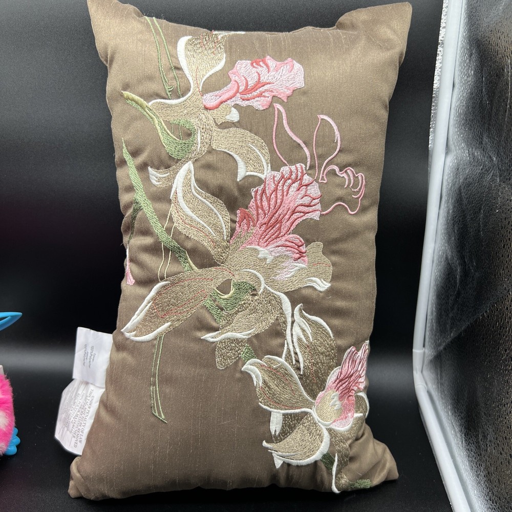 Add a touch of elegance to your home decor with this beautiful Madison Park decorative pillow. The pillow features an embroidered floral pattern in brown, beige, pink, and green colors, creating a stunning visual appeal. With a rectangular shape and a size of 18x12 inches, this pillow is perfect for adding comfort to your couch, bed or chairs. Made of 100% polyester, this pillow is both comfortable and durable. It comes with care instructions that recommend spot cleaning only. The American Directoire style and fall theme of this pillow make it a great addition to your home decor. Don't miss out on the opportunity to own this beautiful decorative pillow from Madison Park.
