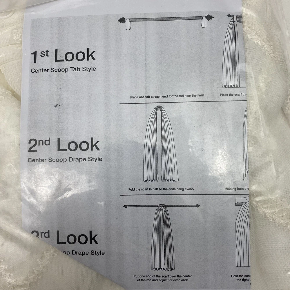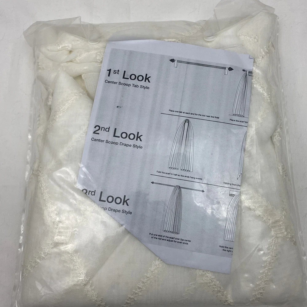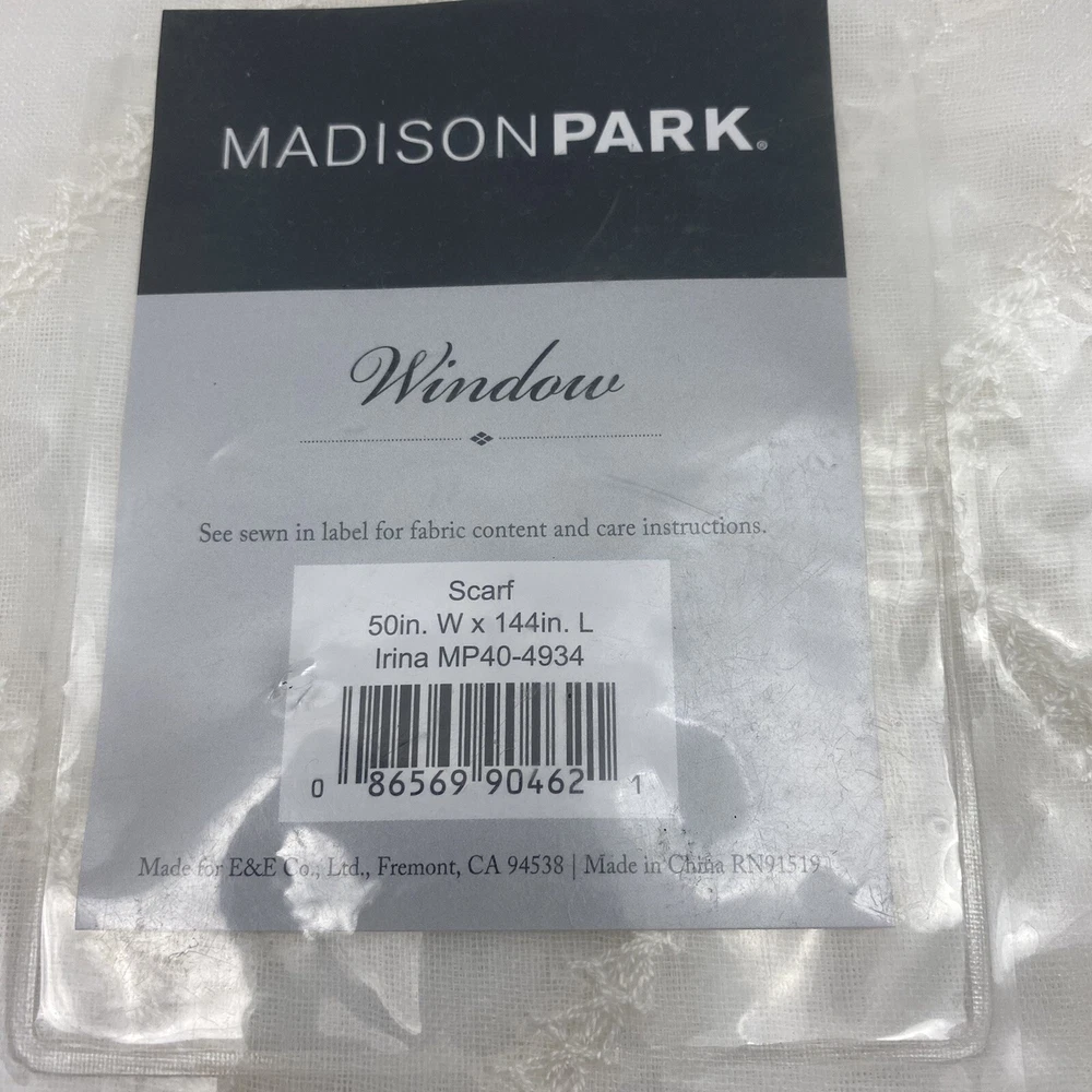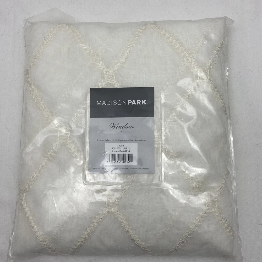 Madison Park Diamond Sheer Embroidered Window Scarf 50" Wide X 144" Long White with embroidered diamond pattern 1-Panel 100% Polyester Machine wash NEW in package Stock# BL-20...