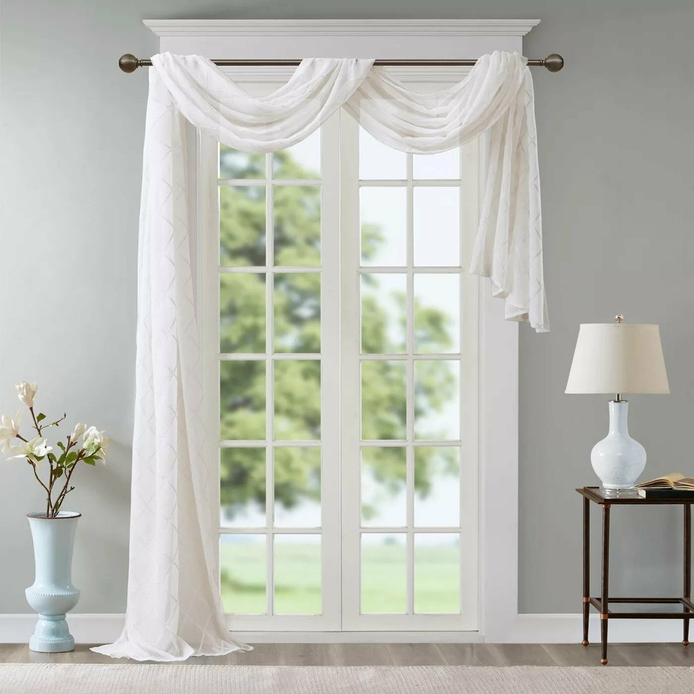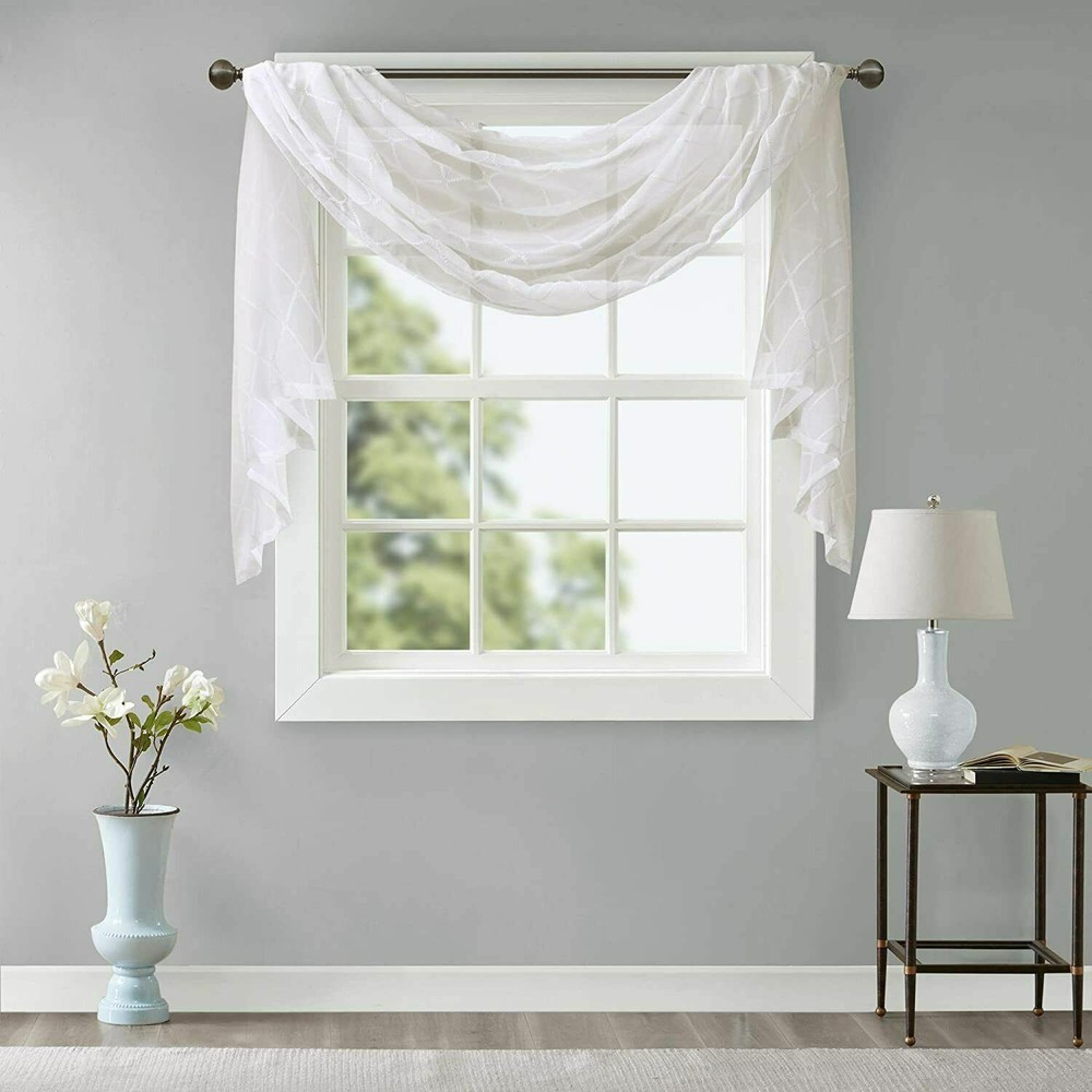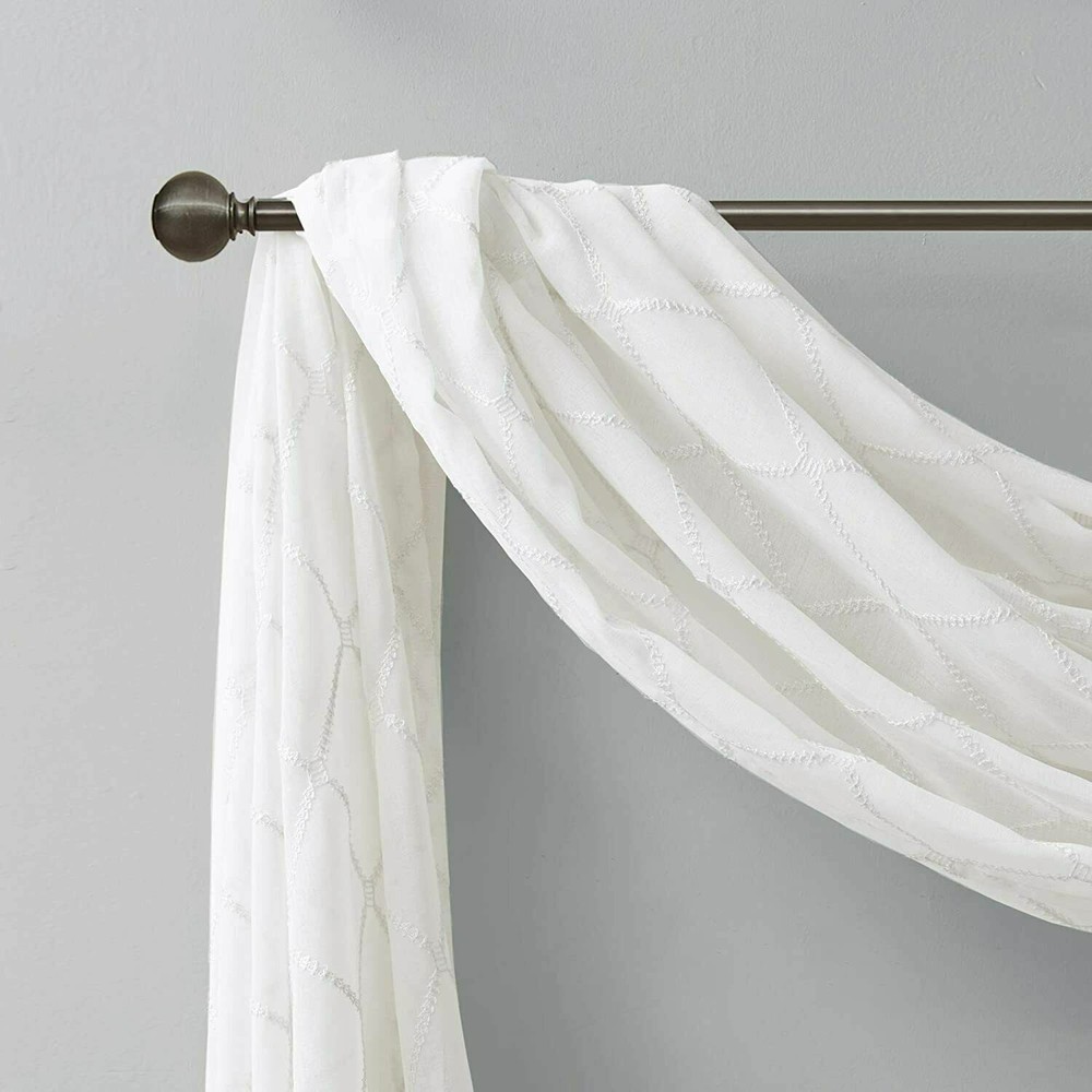 Madison Park Diamond Sheer Embroidered Window Scarf 50" Wide X 144" Long White with embroidered diamond pattern 1-Panel 100% Polyester Machine wash NEW in package Stock# BL-20