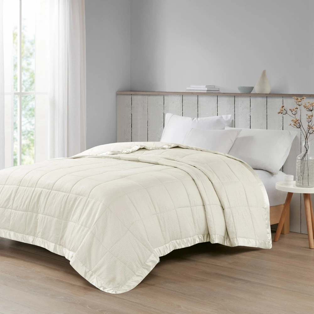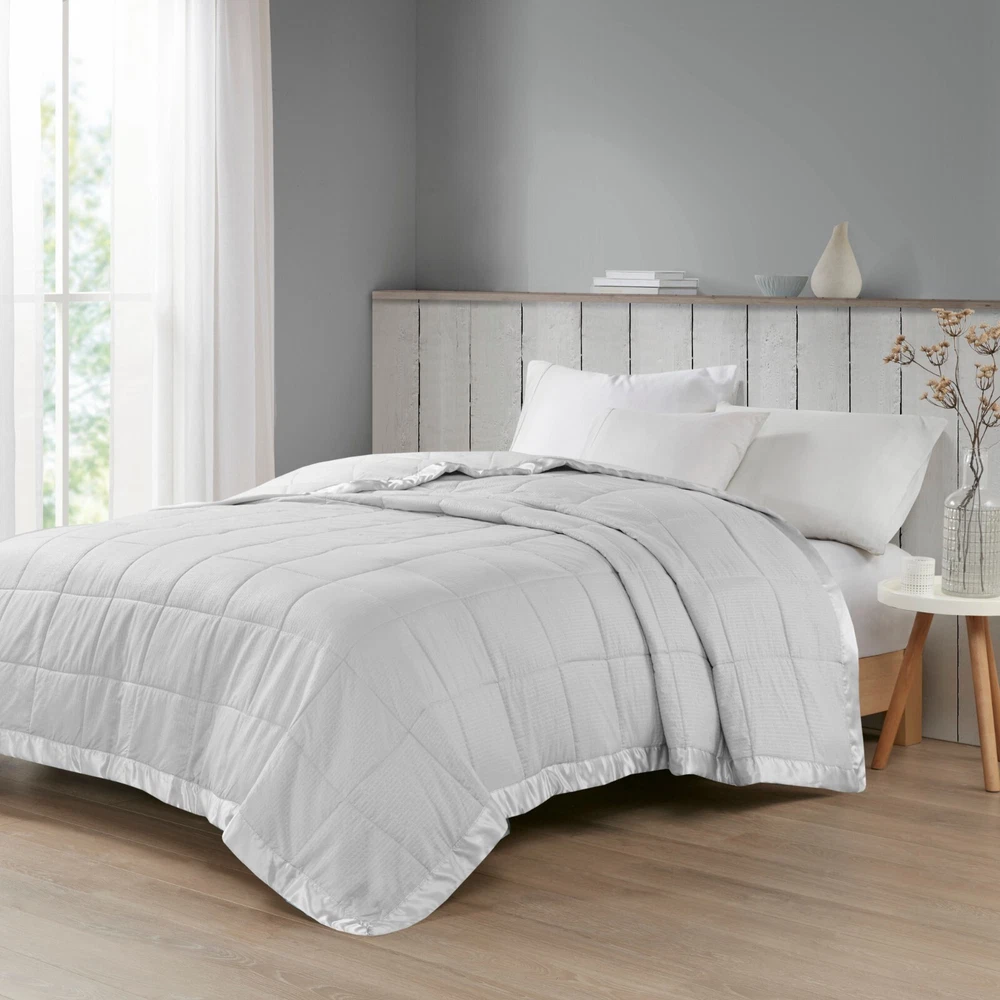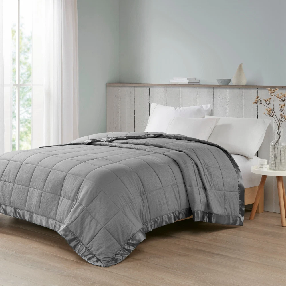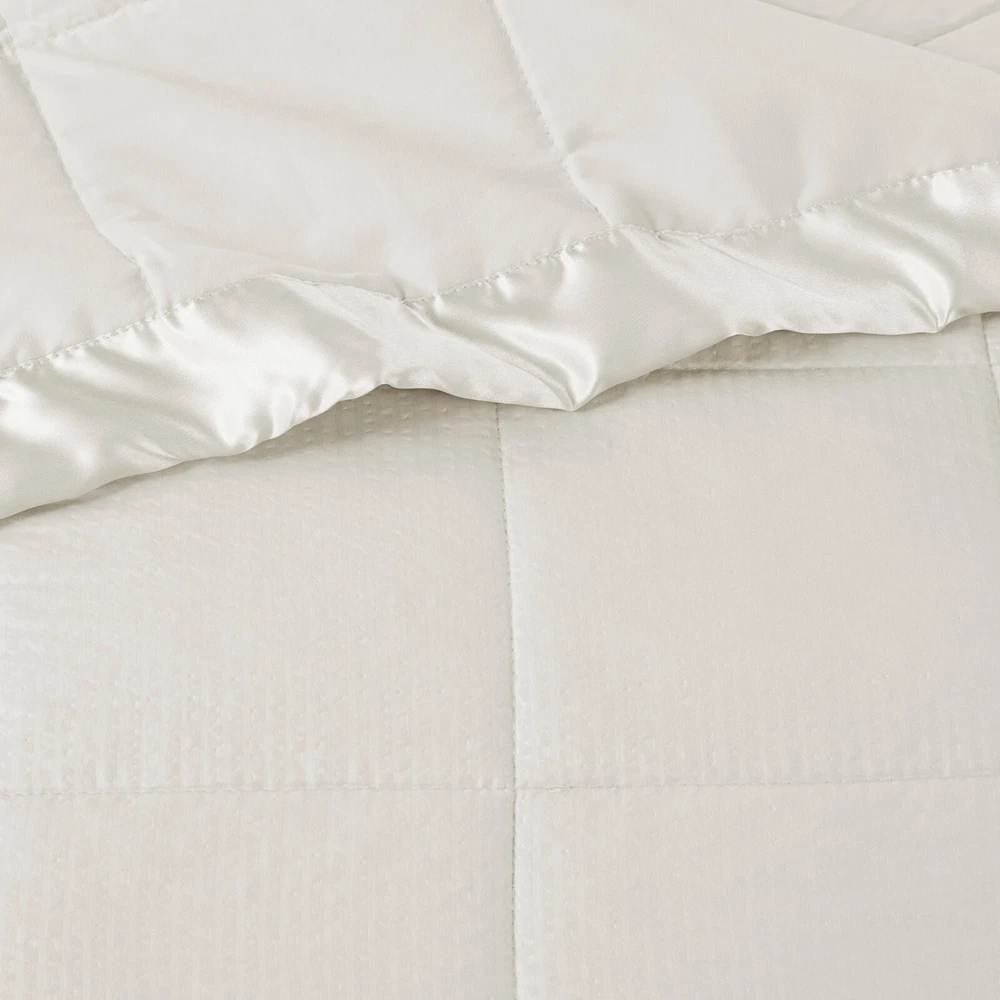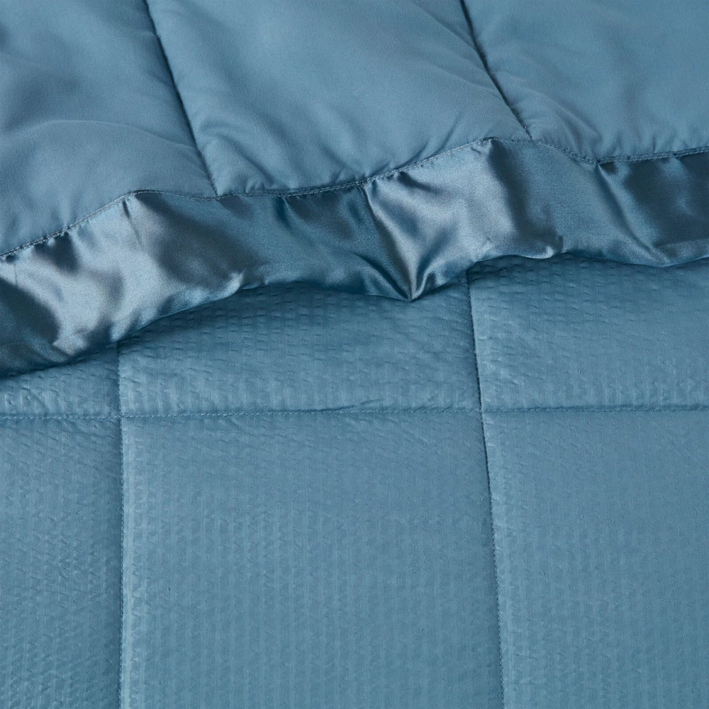 Store Categories Store Categories Bedding Comforters Decorative Pillows Duvet Covers Quilts & Coverlets Sheets Blankets & Throws Mattress Pads Pillows Home Decor Window Treatments Wall Art Home Accents Furniture Beds Dining Seating Ottomans & Benches Accent Chairs Accent Tables Dining Tables Sofas Bath Bath Robes Shower Curtains Towels Bath Rugs Bath Accessories Apparel Pajama Sets Nightgowns Rugs Rugs & Carpets Lighting Lamp Pendant Other Product Overview Details DESCRIPTION Make every night a cozy one with this textured oversized down alternative blanket. The color-matched 3" satin trim adds a luxury element that feels great on your skin. It features a 3M Scotchgard Moisture Management Treatment that wicks away moisture while helping release stains. Machine washable for easy care with a classic box quilting design. This hypoallergenic blanket is also OEKO-TEX certified, meaning it does not contain any harmful substances or chemicals, ensuring quality comfort and wellness. FEATURES • 100% polyester with embossed texture • Classic box quilting design with 3" satin trim • 3M Scotchgard treatment- helps release stains easier and wicks away moisture • Oversized for better coverage • Oeko-Tex Certified, includes no harmful substances or chemicals • Hypoallergenic down alternative filling • Machine washable and steam iron for wrinkle removal • Items may come in rolled or compressed packaging and will need to be fluffed up MATERIAL Face: Solid Embossed Microfiber with 3M Scotchgard Repel & Release Treatment, 100% Polyester Reverse: Solid Microfiber with 3M Scotchgard Repel & Release Treatment, 100% Polyester 3" Binding: 100% Polyester Satin Filling: 100% Polyester Brushed Fiber, End-to-End Box Quilting Available Sizes: Twin Blanket: 66x96" Full/Queen Blanket: 90x96" King Blanket: 108x96" Bedding Comforters Decorative Pillows Duvet Covers Quilts & Coverlets Sheets Blankets & Throws Mattress Pads Pillows Home Decor Window Treatments Wall Art Home Accents Furniture Beds Dining Seating Ottomans & Benches Accent Chairs Accent Tables Dining Tables Sofas Bath Bath Robes Shower Curtains Towels Bath Rugs Bath Accessories Rugs Rugs & Carpets Lighting Lamp Pendant Product Overview Product Details DESCRIPTION Make every night a cozy one with this textured oversized down alternative blanket. The color-matched 3" satin trim adds a luxury element that feels great on your skin. It features a 3M Scotchgard Moisture Management Treatment that wicks away moisture while helping release stains. Machine washable for easy care with a classic box quilting design. This hypoallergenic blanket is also OEKO-TEX certified, meaning it does not contain any harmful substances or chemicals, ensuring quality comfort and wellness. FEATURES • 100% polyester with embossed texture • Classic box quilting design with 3" satin trim • 3M Scotchgard treatment- helps release stains easier and wicks away moisture • Oversized for better coverage • Oeko-Tex Certified, includes no harmful substances or chemicals • Hypoallergenic down alternative filling • Machine washable and steam iron for wrinkle removal • Items may come in rolled or compressed packaging and will need to be fluffed up MATERIAL Face: Solid Embossed Microfiber with 3M Scotchgard Repel & Release Treatment, 100% Polyester Reverse: Solid Microfiber with 3M Scotchgard Repel & Release Treatment, 100% Polyester 3" Binding: 100% Polyester Satin Filling: 100% Polyester Brushed Fiber, End-to-End Box Quilting Available Sizes: Twin Blanket: 66x96" Full/Queen Blanket: 90x96" King Blanket: 108x96"
