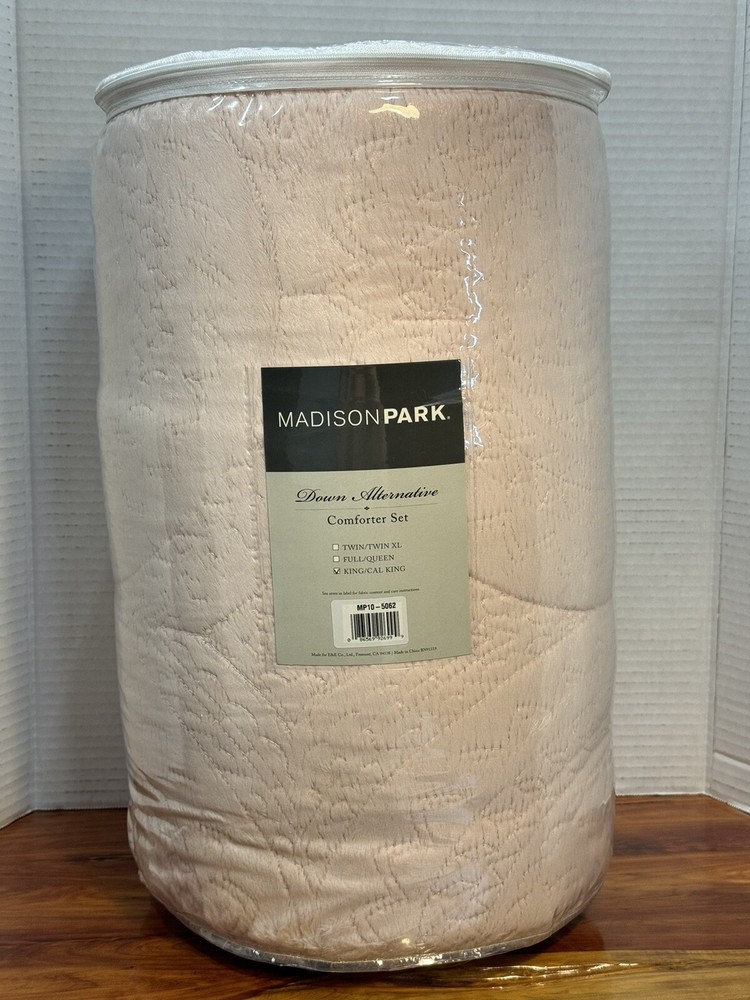 Elevate your bedroom with this luxurious Madison Park Comforter Set in a beautiful pink hue. Crafted with high-quality polyester material, this set includes a king-sized comforter that will keep you cozy and comfortable throughout the night. The down alternative feature provides a soft and warm feel, making it perfect for both teens and adults. This comforter set is perfect for any bedroom and is sure to impress your guests. Add this stunning Madison Park Comforter Set to your bedding collection today and experience the ultimate comfort. Previously owned, never taken out of bag.