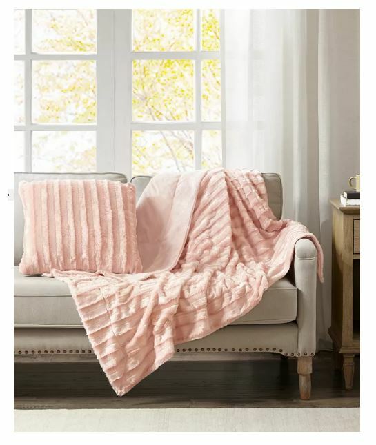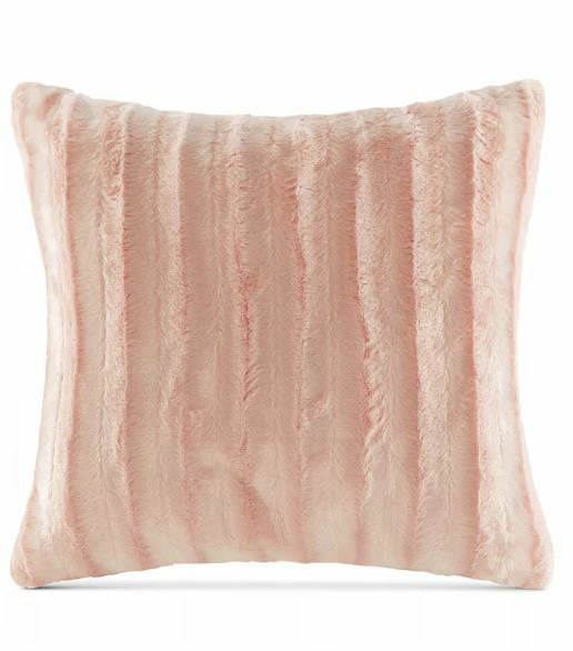 Madison Park Duke 20" Square Faux-Fur Decorative Pillow-Blush T4102077 In irresistibly soft faux fur featuring a reversible design with chunky ribbing at the face and a solid reverse, the Duke decorative pillow from Madison Park is an ideal choice for adding a luxurious look and feel to any room's decor. Dimensions: 20" x 20" Includes: 1 decorative pillow Polyester Spot clean only Imported