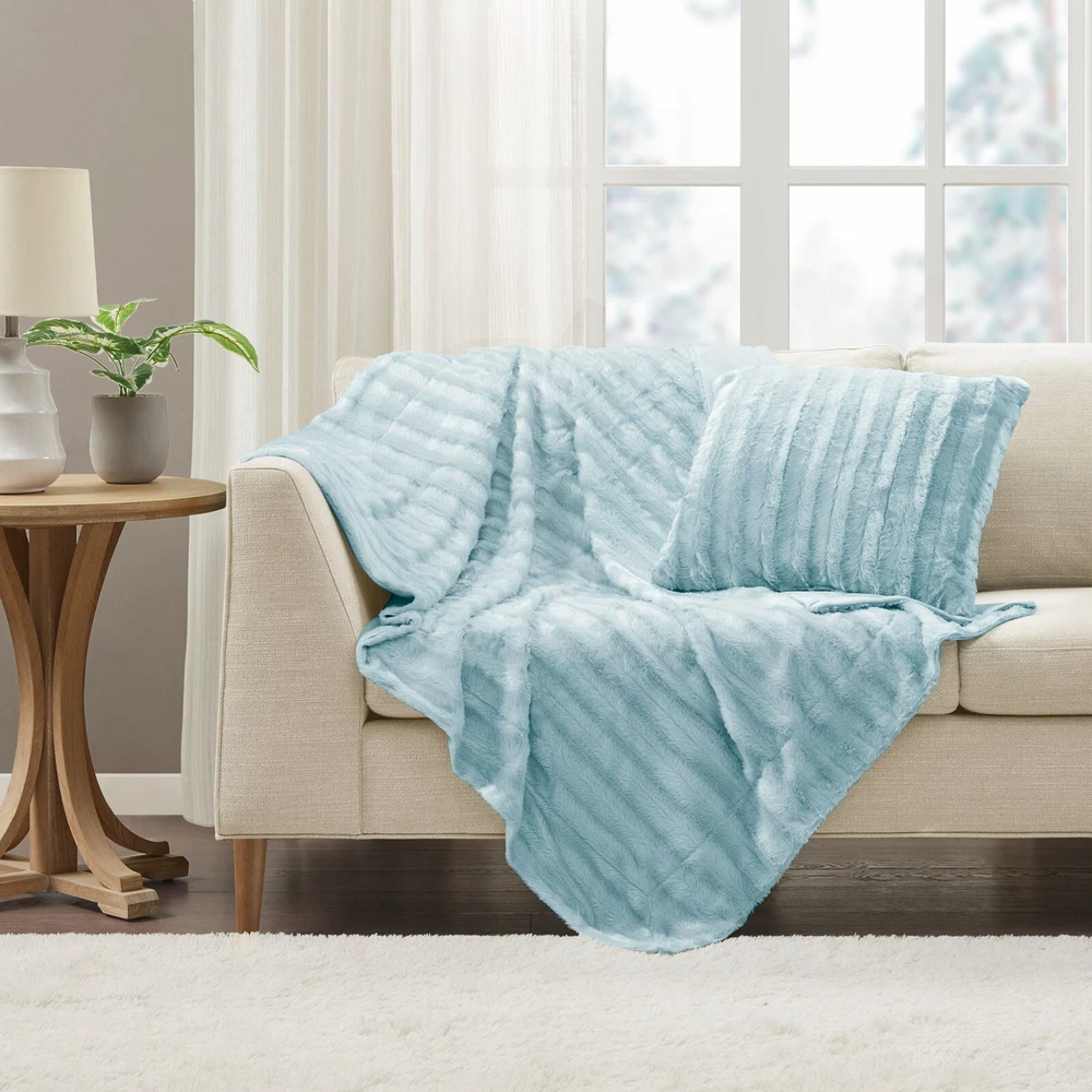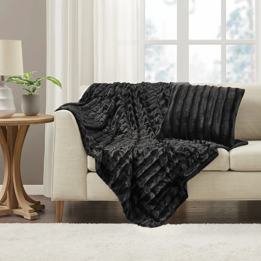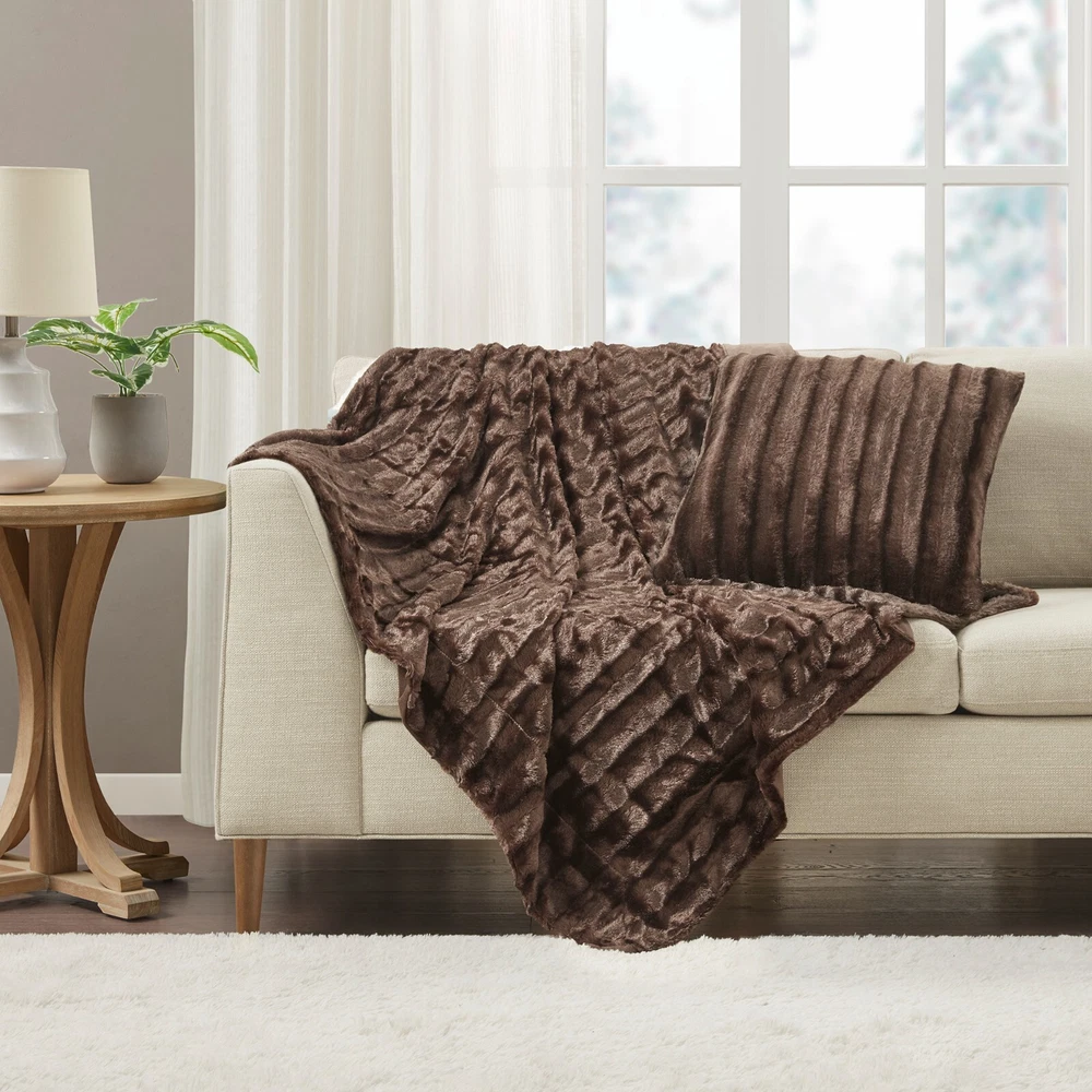 Store Categories Store Categories Bedding Comforters Decorative Pillows Duvet Covers Quilts & Coverlets Sheets Blankets & Throws Mattress Pads Pillows Home Decor Window Treatments Wall Art Home Accents Furniture Beds Dining Seating Ottomans & Benches Accent Chairs Accent Tables Dining Tables Sofas Bath Bath Robes Shower Curtains Towels Bath Rugs Bath Accessories Apparel Pajama Sets Nightgowns Rugs Rugs & Carpets Lighting Lamp Pendant Other Product Overview Details DESCRIPTION Wrap yourself in the lush comfort of the Madison Park Duke Long Fur Throw. The ultra-soft faux fur face provides comfort and coziness, while a micro fur reverse adds a soft, luxurious touch. This throw is light enough for use in the summer, but can be layered on your bed for added warmth on the coldest nights. Machine washable for easy care, the throw is also OEKO-TEX certified, meaning it does not contain any harmful substances or chemicals to ensure quality comfort and wellness. FEATURES • Ultra soft faux fur front with a faux micro fur reverse • Light enough for summer, can be layered for added warmth in the winter • Measures 50"x60" • Machine wash • Minor shedding is expected with faux fur material and should subside after 3-4 washes • Oeko-Tex Certified, includes no harmful substances or chemicals MATERIAL Face: 100% polyester brushed long fur, 260gsm Reverse: 100% polyester lux micro fur, 180gsm Available Sizes: 1 Throw: 50"W x 60"L Bedding Comforters Decorative Pillows Duvet Covers Quilts & Coverlets Sheets Blankets & Throws Mattress Pads Pillows Home Decor Window Treatments Wall Art Home Accents Furniture Beds Dining Seating Ottomans & Benches Accent Chairs Accent Tables Dining Tables Sofas Bath Bath Robes Shower Curtains Towels Bath Rugs Bath Accessories Rugs Rugs & Carpets Lighting Lamp Pendant Product Overview Product Details DESCRIPTION Wrap yourself in the lush comfort of the Madison Park Duke Long Fur Throw. The ultra-soft faux fur face provides comfort and coziness, while a micro fur reverse adds a soft, luxurious touch. This throw is light enough for use in the summer, but can be layered on your bed for added warmth on the coldest nights. Machine washable for easy care, the throw is also OEKO-TEX certified, meaning it does not contain any harmful substances or chemicals to ensure quality comfort and wellness. FEATURES • Ultra soft faux fur front with a faux micro fur reverse • Light enough for summer, can be layered for added warmth in the winter • Measures 50"x60" • Machine wash • Minor shedding is expected with faux fur material and should subside after 3-4 washes • Oeko-Tex Certified, includes no harmful substances or chemicals MATERIAL Face: 100% polyester brushed long fur, 260gsm Reverse: 100% polyester lux micro fur, 180gsm Available Sizes: 1 Throw: 50"W x 60"L