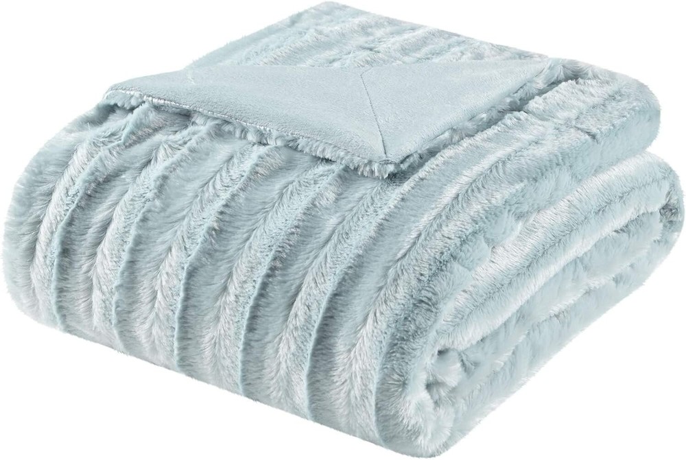Luxurious Madison Park Duke Throw - Soft Faux Fur Reversible Blanket Product Details: Brand: Madison Park Model: Duke Luxury Throw Material: Premium Soft Faux Fur Dimensions: 50" x 60" Color: Solid Blue Features: Reversible Design, All-Season Insulation Care Instructions: Machine Washable Description: Enhance your home decor with the Madison Park Duke Luxury Throw, a perfect blend of elegance and comfort. Crafted from premium soft faux fur, this 50" x 60" throw blanket offers exceptional warmth and coziness. The solid blue hue effortlessly complements any room decor, while the reversible design provides two stylish looks in one. Ideal for year-round use, this throw features all-season insulation. Easy to care for, it is machine washable, ensuring its luxurious feel remains intact.