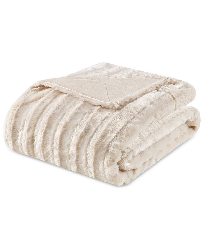 Madison Park Duke Ribbed Faux Fur Throw 50x60 - Ivory *NEW with tags*