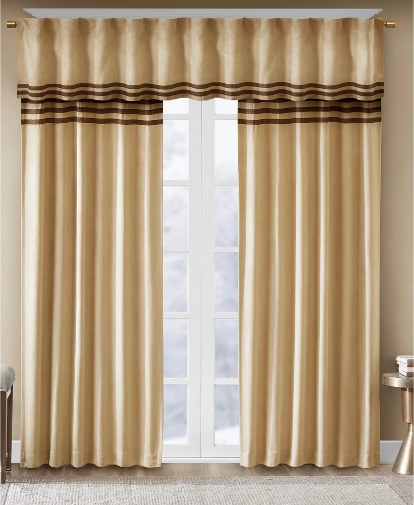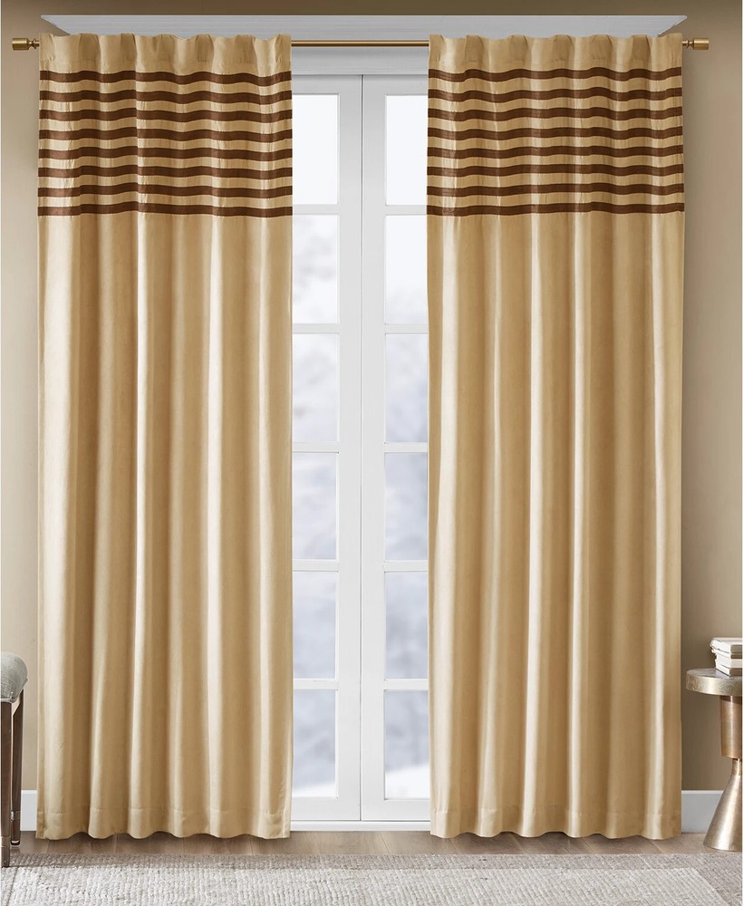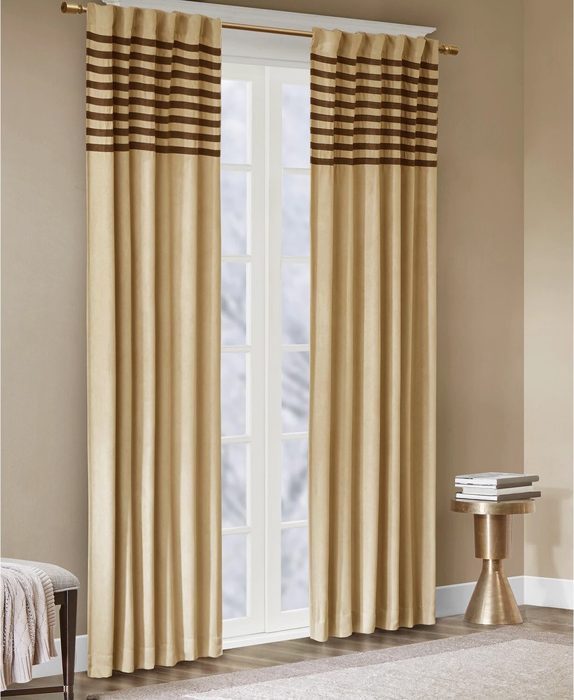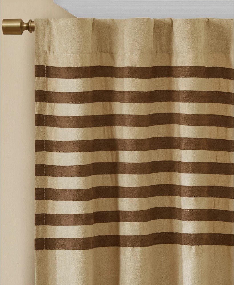 Color: Beige / Brown Size: 42" x 63" Elegantly finish your room's look with the luxe microsuede fabric and stripe detailing of this Dune pair of window panels from Madison Park. Pair of two window panels (42" x 63" each) Features a rod pocket top finish and a 3" drapery pocket for easy assembly. Stripe pattern Microsuede fabric Polyester Machine washable Imported