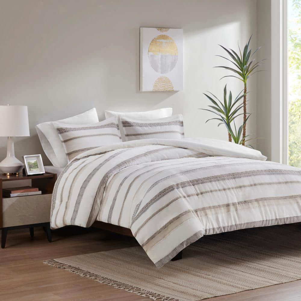 Contact Us Add to Favorite Fast Shipping Hassle Free Return eBay Money Back Guarantee Authenticity Guarantee Features Striped clipped jacquard design with geometric detail in stripes Bring unique design and texture to your bedroom Inside corner ties to secure the insert (not included) Item Description Brighten your bedroom with the refreshing beauty of this globally inspired duvet cover set. A clipped jacquard stripe design, in taupe, gray, birch, and tan colors, is artistically arranged on the off white fabric, for an understated casual look. Geometric details in the stripes elevate the design of the duvet, while the solid white reverse adds a bright complementary touch to the bed. Bedding Material: Microfiber Care Instructions: Machine Wash Closure Type: Button Color: Neutral Color Family: Multi-Colored Decor Type: Bedroom Linen Decorative Accents: No Decorative Accents Features: No Additional Features Lifestage: Adult Linen Type: Duvet Cover Set Material: Polyester (100%) Material Family: Polyester Number of Pieces: 3 Pattern Type: Striped Returnable: 30-Day Set Includes: Duvet Cover,Sham Size: King/Cal King Style: Casual,Global Thread Count: 0 Duvet Cover Length (in.): 92 in Duvet Cover Width (in.): 104 in Sham Length (in.): 36 in Sham Width (in.): 20 in About us Customer service is our top priority! Please be sure to read the description thoroughly to make sure that this is the item you want before making a purchasing decision. If you have any questions about this item, please contact us via eBay messages before placing your order. We make every effort possible to accurately describe and depict the items. Please be aware that slight variations in color may be due to differences in lighting and computer monitor resolutions. All items are in stock at the time of listing; however, in the unlikely and unforeseen event that we are unable to fulfill your order through any of our networked warehouses, we will notify you as quickly as possible and offer you a 100% refund on your purchase. Thank you for shopping with us. We appreciate your business! Payment PayPal is our preferred method of payment. If you do not have a PayPal account, all major credit cards are gladly accepted through PayPal as the payment processor. PayPal offers great buyer and seller protection. Your order will be processed pending receipt of cleared payment through PayPal. Sales tax may be charged depending on your location. Shipping We provide fast, free shipping. Most items are shipped within 3-5 business days of receiving cleared payment. We ship to the lower 48 contiguous United States only. We do not ship to P.O. Boxes or APOs. For select items, we ship internationally through eBay?s Global Shipping Program. We do ship most of our smaller items internationally using eBays Global Shipping Program. If ordering electrical items outside of the U.S., please note that they will come equipped with a standard U.S. voltage plugs. You will need a suitable adapter to use the item in your country. Certain restrictions apply. Standard or Economy Shipping is ALWAYS FREE! You will be notified via eBay messages as soon as your items ship. Special Notice for Freight Items: If an item ships via Freight (Truck) Delivery, a valid phone number will be required so that we can contact you to schedule delivery. The item may be delivered with curbside delivery. An adult signature will be required. Please be sure to have available help on hand to assist you with moving the item to the desired location in or outside of your home. Freight items must be inspected upon delivery. In the unlikely event that damaged is observed, you MUST refuse delivery and note the damage on the shipping receipt and send it back via the Freight carrier. Returns will not be accepted on Freight items after they have been delivered, inspected, and the driver has left the premises. Returns We offer a 30 day return/exchange policy for most of our products. You can request a refund if you are dissatisfied for any reason with your product. (Restocking Fee May Apply). Only factory defects are accepted as a reason for a return. In the case of factory defects, if available, we will replace the product for you. When returning an item, it must be in all of the original packaging and include all of the original accessories or items that came with it. The item and package should be in original and perfect condition. You will be required to cover shipping on the return of non-defective items. All returns MUST be done within 30 days of date of purchase. Please note that we cannot give refunds or replacements after the 30 day limit has expired. When sending in a return, please note that it can take up to 7 business days for the return to be processed. We do our best to process as quickly as possible. We are extremely fair, and in the rare event of something out of the ordinary happening with our products or shipping, we will gladly work with you to find a fair resolution. Disclaimer Were sorry, but we do not honor product exchange requests. If you need to exchange an item received, you will need to go through the normal returns process identified in our returns section and then order the correct item, if it is still available. Orders are processed immediately and dispatched to fulfillment as soon as they are received. For this reason, we are typically unable to honor cancellation requests. If you need to cancel the transaction, please contact us as soon as possible and we will attempt to cancel the order. If the order has gone too far through the fulfillment process, we will be unable to cancel. In that event, you would need to wait until you receive the item and go through the normal returns process as mentioned in the returns section of our policies. Payment Options Shop With Confidence Copyright ©2023, All rights reserved. Listed by Sku Fetch