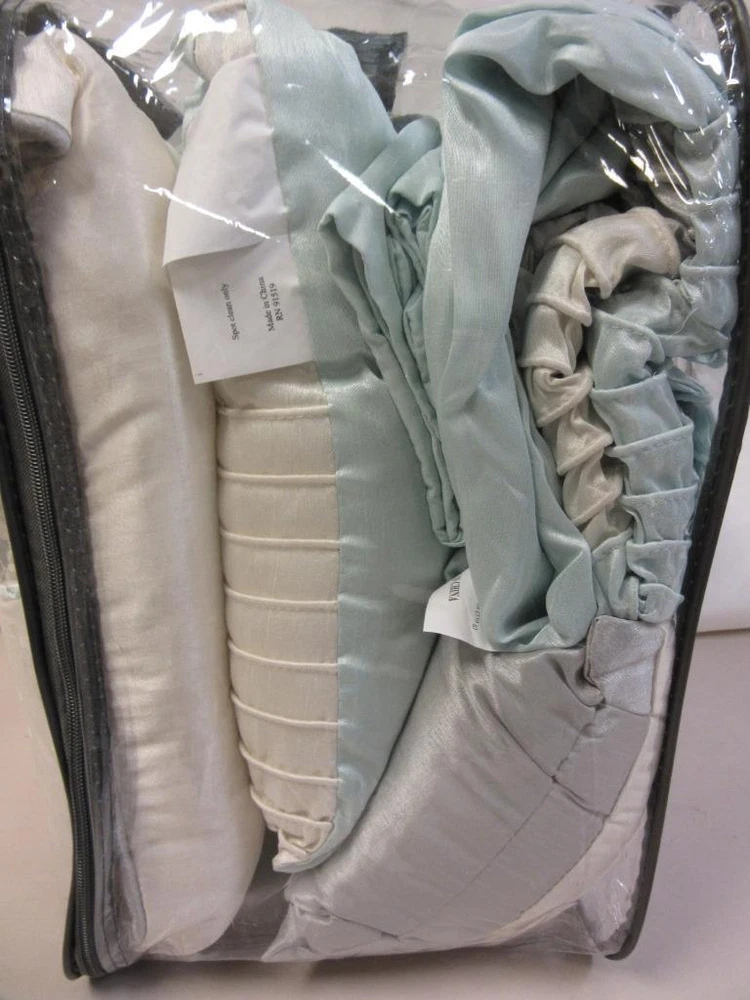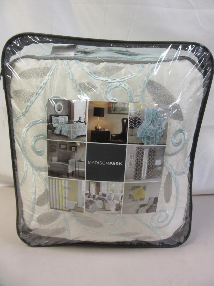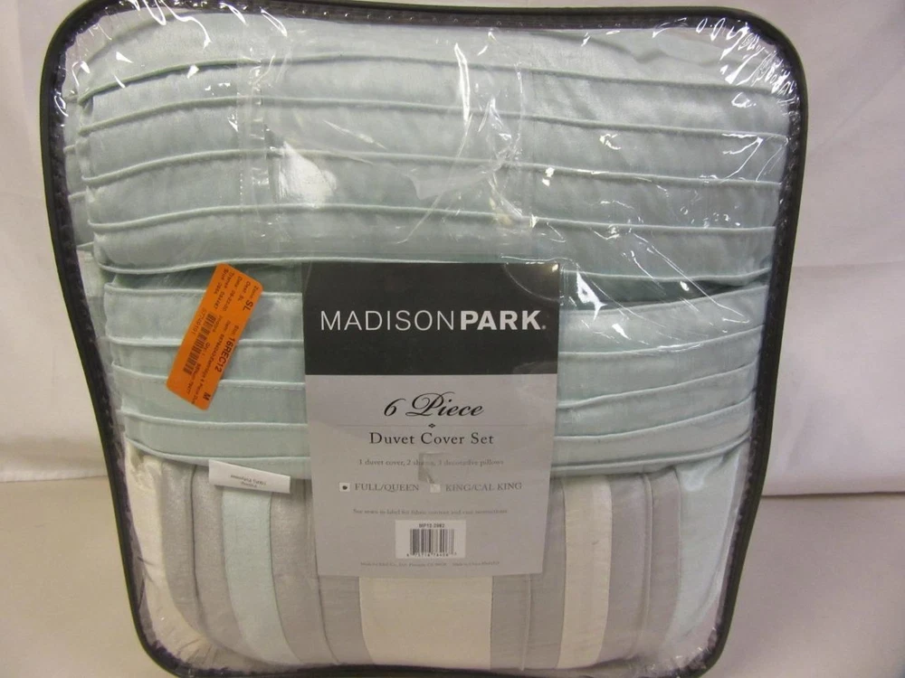 Unused but open package. The elegant pintuck details combined with leaf, scroll and striped accents on this Madison Park Eastridge duvet cover set add a chic touch to your bedroom decor. FEATURES 6 pieces Pintuck details FULL / QUEEN 6-PIECE SET Duvet cover: 90" x 90" Two shams: 20" x 26" Oblong pillow: 12" x 20" Small square pillow: 16" x 16" Large square pillow: 18" x 18" CONSTRUCTION & CARE Polyester Machine wash Imported We will be happy to answer any questions or provide more information, just click "ask a question" at the bottom of the page. Thanks! Madison Park Eastridge 6-piece Duvet Cover Set Full / Queen Aqua Blue Madison Park Eastridge 6-piece Duvet Cover Set Full / Queen Aqua Blue Click images to enlarge Description Unused but open package. The elegant pintuck details combined with leaf, scroll and striped accents on this Madison Park Eastridge duvet cover set add a chic touch to your bedroom decor. FEATURES 6 pieces Pintuck details FULL / QUEEN 6-PIECE SET Duvet cover: 90" x 90" Two shams: 20" x 26" Oblong pillow: 12" x 20" Small square pillow: 16" x 16" Large square pillow: 18" x 18" CONSTRUCTION & CARE Polyester Machine wash Imported We will be happy to answer any questions or provide more information, just click "ask a question" at the bottom of the page. Thanks! Pictures sell! Auctiva offers Free Image Hosting and Editing. 300+ Listing Templates! Auctiva gets you noticed! The complete eBay Selling Solution. Track Page Views With Auctiva's Counter