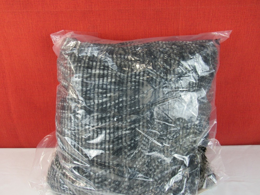 Madison Park Edina Faux Fur Square Pillow 20 x 20"-Black T4102759 Retail $64 Take your sofa or bed's look and feel to a whole new level of luxury with the richly textured design and ultra-soft faux fur of this gorgeous Edina decorative pillow from Madison Park. Each decorative pillow sold individually Dimensions: 20" x 20" Down Pillows: Dry pillows with a tennis ball to prevent clumping Faux-fur face: acrylic/polyester; Faux-fur reverse: polyester; feather/down fill Spot clean only. Imported