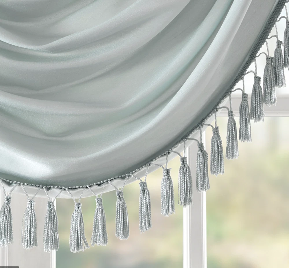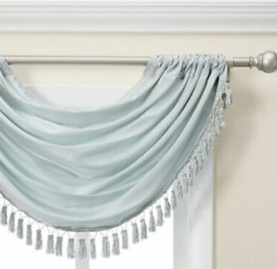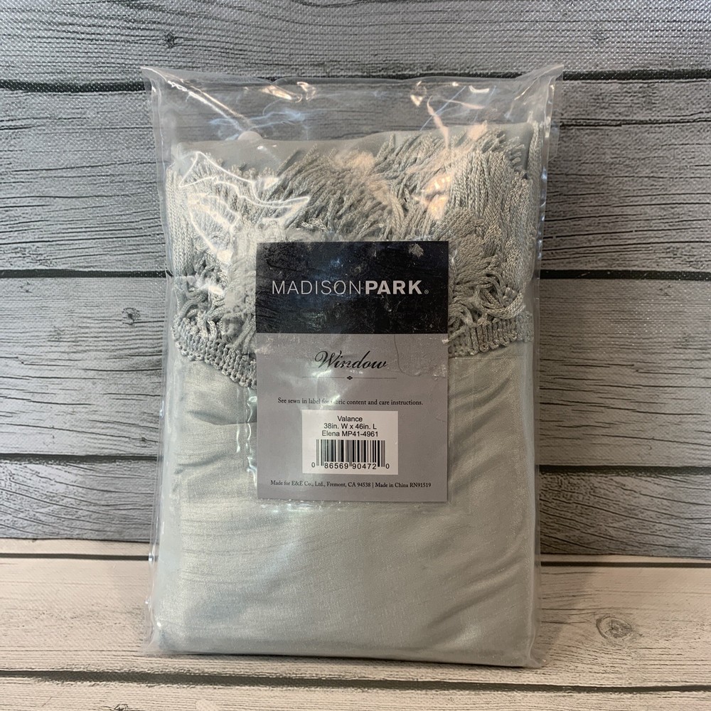 Madison Park Elena Waterfall Faux Silk Valances for Window,38X46", Dust Aqua New. NEW open box. See pictures for details. Ships daily from U.S.