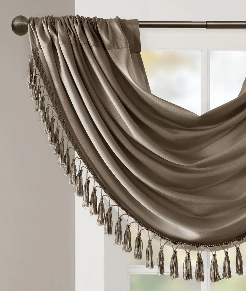 Madison Park Elena Waterfall Rod Pocket Faux-Silk Valance, 38" x 46". Brand new, packaging has some sticker residue but Valence is still in new condition. Retail: $74.00...