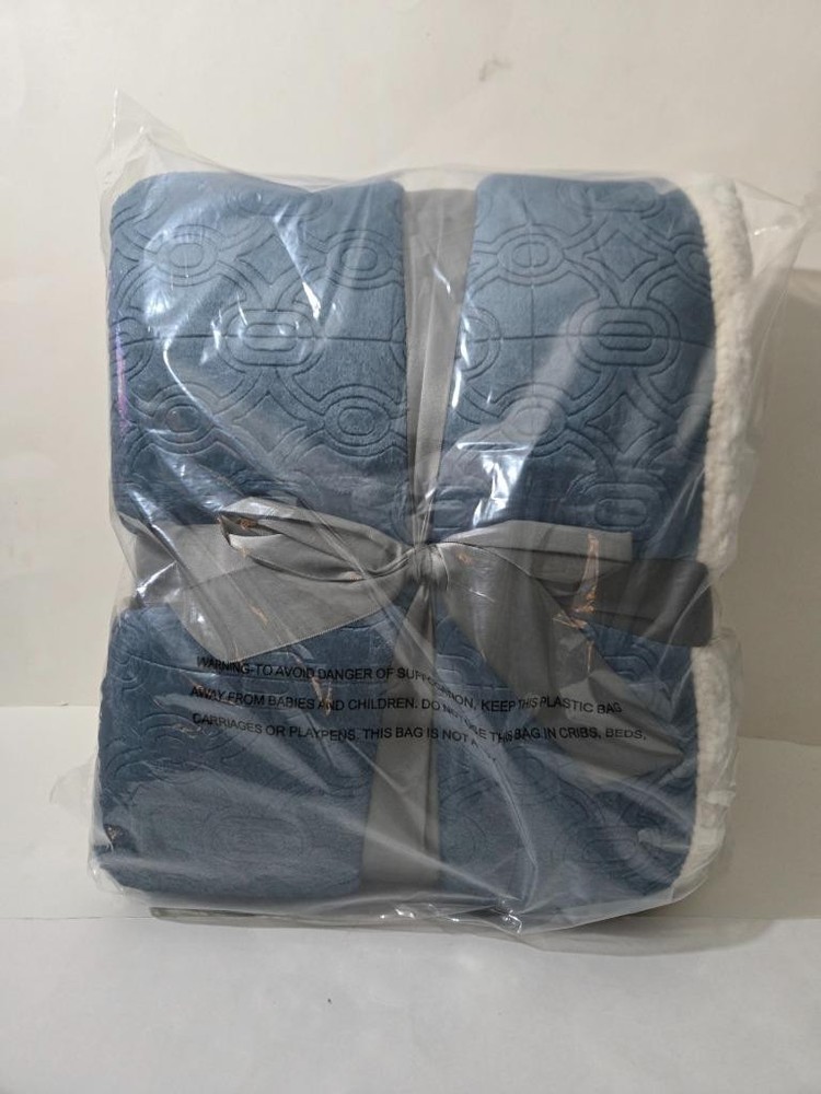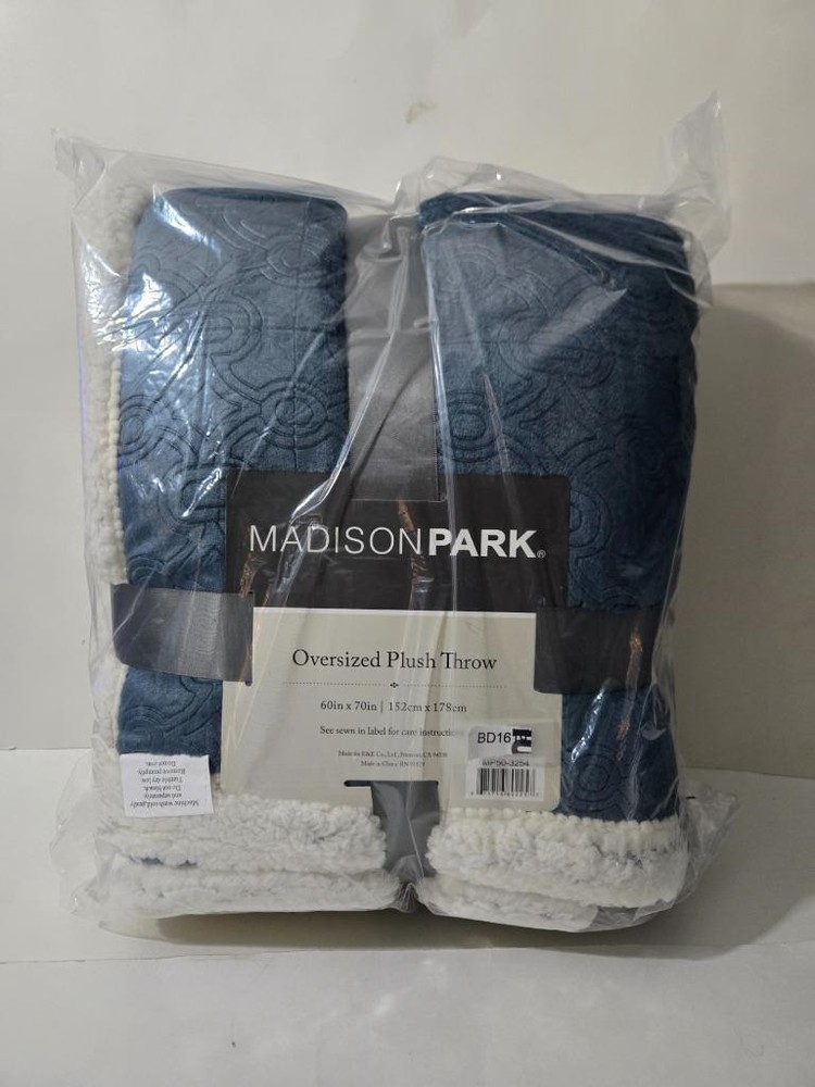 Madison Park Elma Luxury Oversized Textured Plush Throw Blue 60x70" This super soft plush throw features a textured design that adds dimension to the throw. The reverse features a cozy berber to keep you warm. It's also oversized for added warmth and comfort. Brand: Madison Park Size: 60x70" Material: 100% Polyester Color: Blue 100% Polyester Imported Oversized Textured design Ultra soft plush fabric Face: 3D embossed micro velour, 300gsm, 100% polyester; back: micro berber, 200gsm, 100% polyester 1 Throw:60x70" MACHINE WASH COLD, GENTLE CYCLE, AND SEPARATELY. DO NOT BLEACH. TUMBLE DRY LOW, REMOVE PROMPTLY, DO NOT IRON. IF THERE IS NO FREE MOVEMENT IN THE WASHER OR DRYER, USE LARGE CAPACITY COMMERCIAL WASHER/DRYER. Madison Park Elma Luxury Oversized Textured Plush Throw Blue 60x70" Click images to enlarge Description Madison Park Elma Luxury Oversized Textured Plush Throw Blue 60x70" This super soft plush throw features a textured design that adds dimension to the throw. The reverse features a cozy berber to keep you warm. It's also oversized for added warmth and comfort. Brand : Madison Park Size: 60x70" Material : 100% Polyester Color : Blue 100% Polyester Imported Oversized Textured design Ultra soft plush fabric Face: 3D embossed micro velour, 300gsm, 100% polyester; back: micro berber, 200gsm, 100% polyester 1 Throw:60x70" MACHINE WASH COLD, GENTLE CYCLE, AND SEPARATELY. DO NOT BLEACH. TUMBLE DRY LOW, REMOVE PROMPTLY, DO NOT IRON. IF THERE IS NO FREE MOVEMENT IN THE WASHER OR DRYER, USE LARGE CAPACITY COMMERCIAL WASHER/DRYER. Combined Shipping We charge full shipping & handling on the item with the highest shipping rate. Each additional items shipping & handling rate will be discounted 50% off. Please insert all items in the cart to show all applicable discounts. Items must be paid together to receive full discount Pictures sell! Auctiva offers Free Image Hosting and Editing. 300+ Listing Templates! Auctiva gets you noticed! The complete eBay Selling Solution.