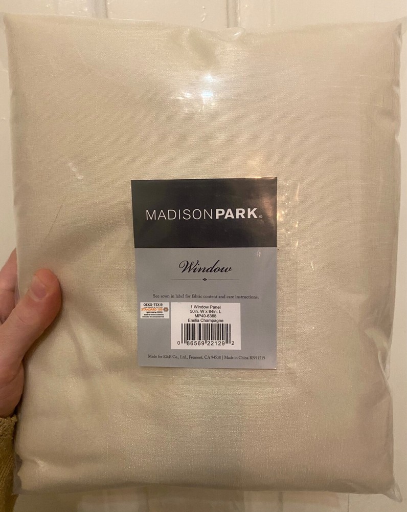 The Madison Park Emilia 50" x 84" Single Window Panel in Champagne is a modern style curtain made of faux silk material. The curtain features a tab top curtain heading and comes in a solid gold color. It is lined for added privacy and is designed for indoor use. The panel is manufactured by Madison Park and is branded as the Emilia model, measuring 50 inches in width and 84 inches in length. This single window panel is brand new and adds a touch of elegance to any room.Shipped fast and free! Thank you and we appreciate your business.