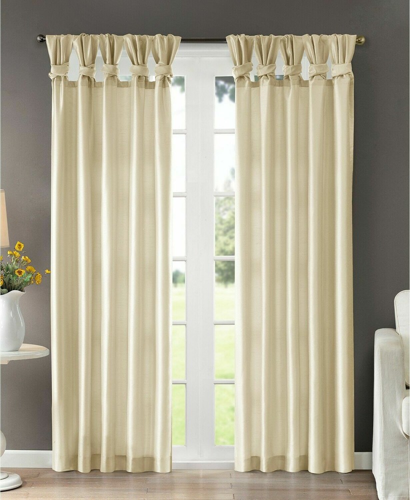 Madison Park Emilia 50" x 84" Lined Faux-Silk Twisted Tab Window Panel-T4102762 1 Panel Only Maximize and room's style and privacy with the shimmering faux silk and lined design of this Emilia twisted tab window panel from Madison Park. Dimensions: 50" x 84" Twist tab header Fits rods up to 2" diameter Lined for enhanced privacy and a better drape Fake-silk fabric NOTE: photo displays two panels for a finished look, but this item contains only 1 panel. Each panel is sold individually Fake-silk fabric and lining: polyester Machine washable Imported
