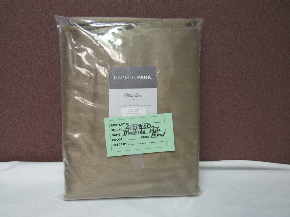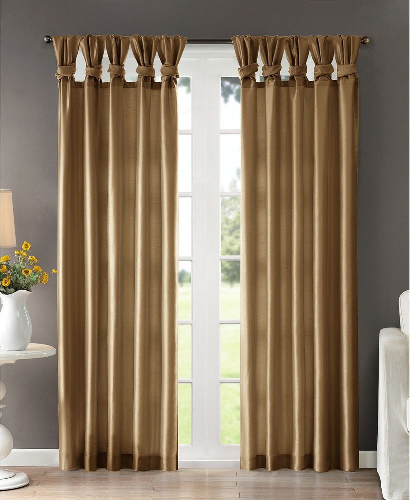 Madison Park Emilia 50" x 95" Lined Faux-Silk Twisted Tab Window Panel T4101400 Maximize and room's style and privacy with the shimmering faux silk and lined design of this Emilia twisted tab window panel from Madison Park. Dimensions: 50" x 95" Twist tab header Fits rods up to 2" diameter Lined for enhanced privacy and a better drape Fake-silk fabric NOTE: photo displays two panels for a finished look, but this item contains only 1 panel. Each panel is sold individually Fake-silk fabric and lining: polyester Machine washable Imported NOTE: photo displays two panels for a finished look, but this item contains only 1 panel. Each panel is sold individually