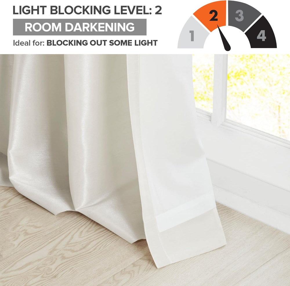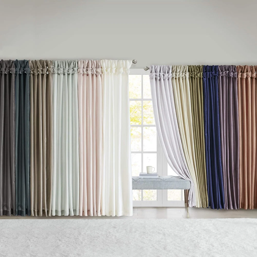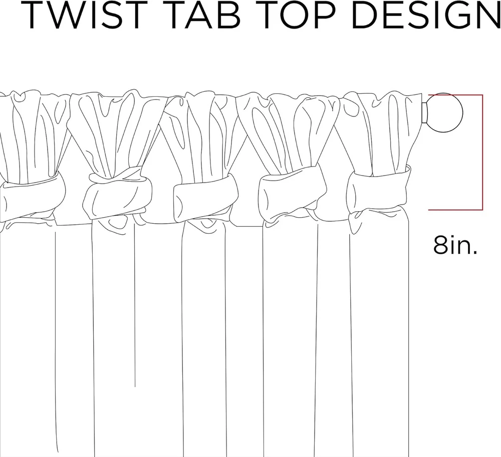 Madison Park Emilia Faux Silk Single Curtain with Privacy Lining, DIY Twist Tab Top, Room Darkening Window Drape for Living Room, Bedroom and Dorm, 84"L x 50"W, White 100% Polyester Faux Silk, Polyester Lining NEW & TRENDY - Give your home a decorator’s touch with the Madison Park Emilia Window Curtain. Made from a faux silk fabric, this elegant window curtain features a DIY twist tab top. the luxurious sheen and rich navy tone provides a touch of sophistication to your decor. Easy to hang, this twist tab top curtain turns any room into a gorgeous getaway. PRIVACY – These living room curtains feature a back lining for enhanced privacy and improved drapability. The lining also boosts their ability to dim incoming light, creating a cozy room-darkening effect for a more inviting ambiance TWISTED TAB - This elegant bedroom window curtain features a DIY twist tab top finish that not only creates rich, deep folds for a professional look, but also makes this panel easy to hang, open and close MEASUREMENT - 1 Window Panel: 50"W x 84"L. Fits up to a 2" rod. As shown in the image - For standard coverage, purchase 2 panels. Some light may enter between the tabs due to the design. Install the rod 9” higher for better coverage CARE - Machine wash cold on gentle cycle, tumble dry on low heat, wash alone, do not bleach Give your home a decorator’s touch with the Madison Park Emilia Window Curtain. Made from faux silk fabric, this elegant window curtain features a DIY twist tab top finish that creates rich, deep folds for a professional look. The added lining enhances privacy, offers a fuller appearance, and improves the curtain’s ability to darken the room, creating a cozier, more serene ambiance. The luxurious sheen and rich color tone add a touch of sophistication to your decor. OEKO-TEX certified, it ensures quality comfort and wellness without harmful substances. Easy to hang, this tab top curtain turns any room into a gorgeous getaway. Hanging instructions included. As shown in the image, two curtain panels need to be purchased for each window; fits up to a 2" diameter rod.