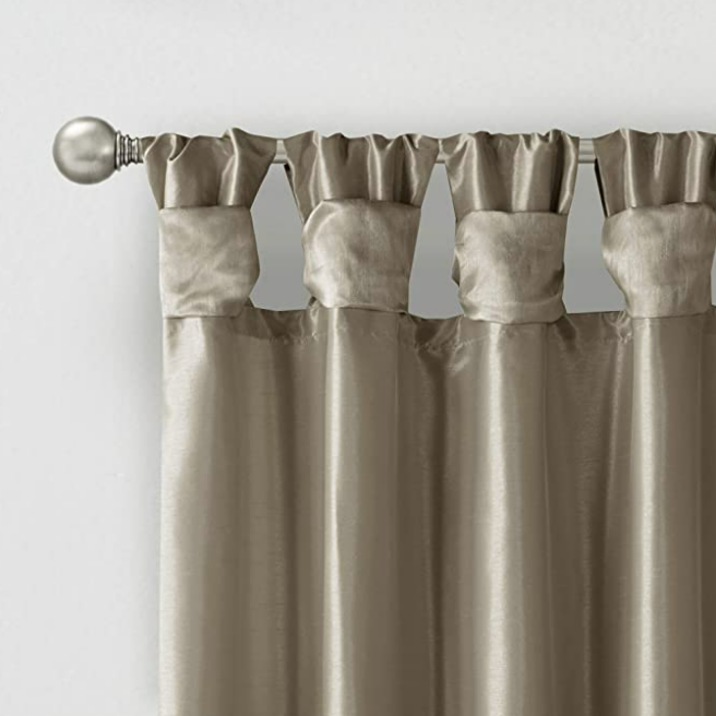 Madison Park Emilia Window Curtain Panel Brand new Single Panel 95" x 50" Color: Pewter Solid faux silk panel features chic twist tabs along the top, and creates rich, deep folds for extra-luxurious style Lined for better drapability and more privacy 100% polyester Hangs on twist tabs Panels are sold individually and measure 50" W Fits a rod up to 2" diameter Machine wash