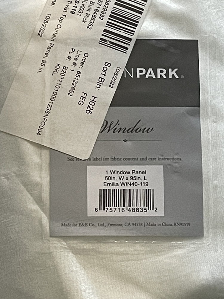 Madison Park Emilia Twist Tab Top Faux-Silk Window Curtain Panel 50" x 95" White New open package condition...
