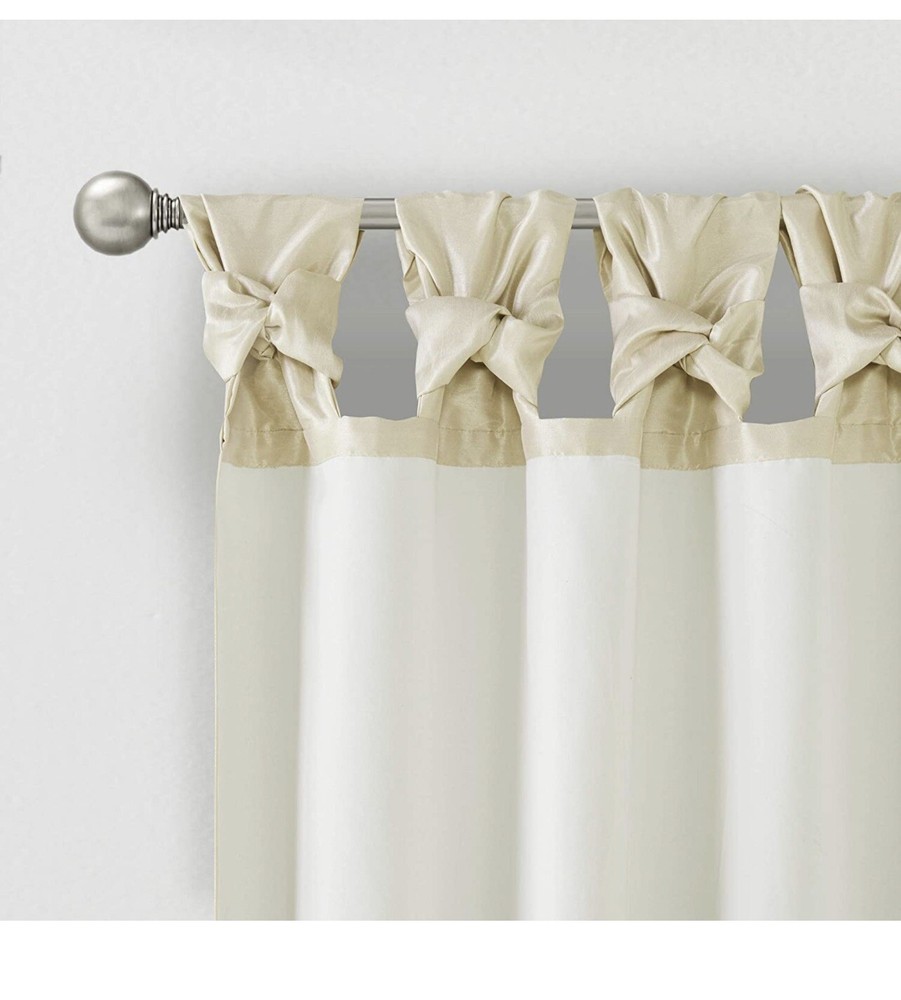 about the product Made of soft, faux silk with chic twist tabs at the top, the Emilia Curtain Panel and Valance from Madison Park hangs easily and adds a designer's touch to your window. Add a designer's touch to your window décor with the Emilia Curtain Panel and Valance from Madison Park Window curtain panel fits a rod up to 2" diameter Valance measures 50" W x 26" L 100% polyester Machine wash