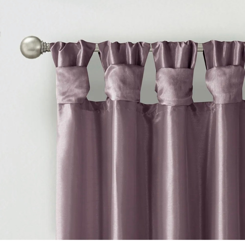 DESCRIPTION Give your home a decorator’s touch with the Madison Park Emilia Window Curtain. Made from a faux silk fabric, this elegant window curtain features a DIY twist tab top finish that creates rich, deep folds for a professional look. Added lining offers more privacy and a fuller appearance, while the luxurious sheen and jewel purple tone provides a touch of sophistication to your décor. Easy to hang, this tab top curtain turns any room into a gorgeous getaway. Hanging instructions are included. Fits up to a 2" diameter rod. PRODUCT DETAILS 1 Window Panel: 50x84" FEATURES • DIY twisted tab top finish window curtain panel • Faux silk sheen base fabric • Added lining for privacy and better drapability • Need to purchase 2 curtains for each window • Machine washable MATERIAL 100% polyester, poly lining, twisted tab CARE INSTRUCTION MACHINE WASH COLD, GENTLE CYCLE, AND SEPARATELY. DO NOT BLEACH. TUMBLE DRY LOW, REMOVE PROMPTLY, DO NOT IRON. IF THERE IS NO FREE MOVEMENT IN THE WASHER OR DRYER, USE LARGE CAPACITY COMMERCIAL WASHER/DRYER.