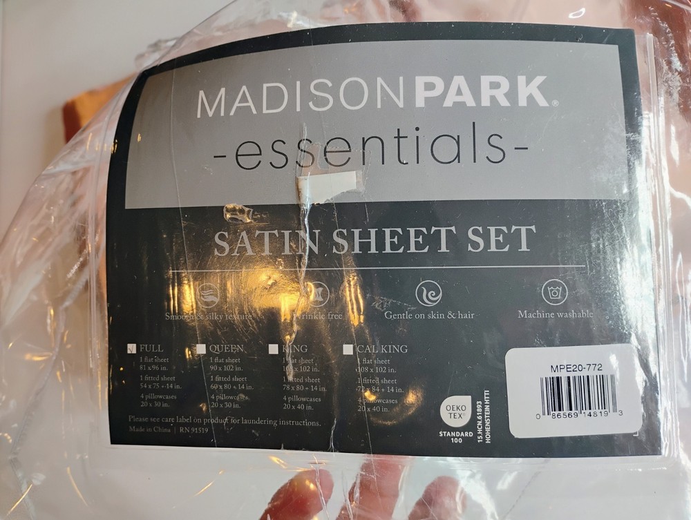 Madison Park Essentials 6PC Satin Sheet Set, FULL, Blush MISSING FITTED SHEET. Condition is Pre-owned. Shipped with USPS Ground Advantage....