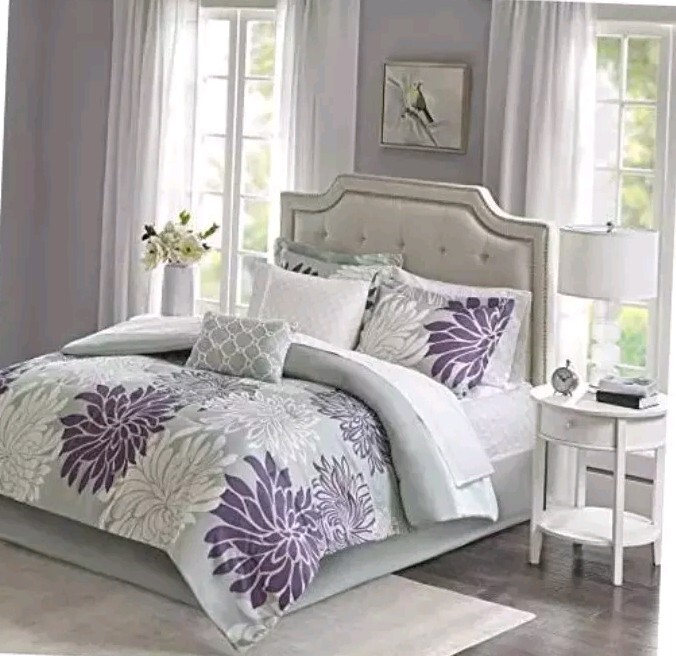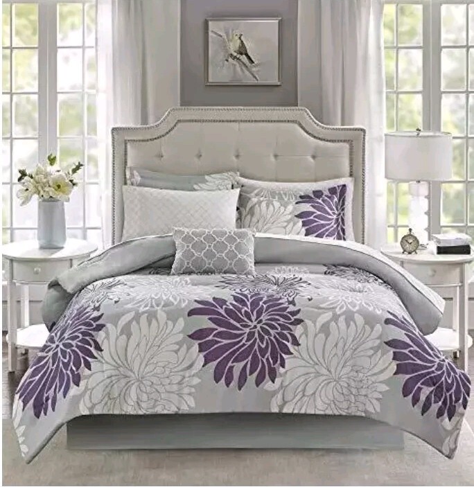 Madison Park Essentials 7 Piece Comforter & Cotton Sheet Set Size Twin Purple...