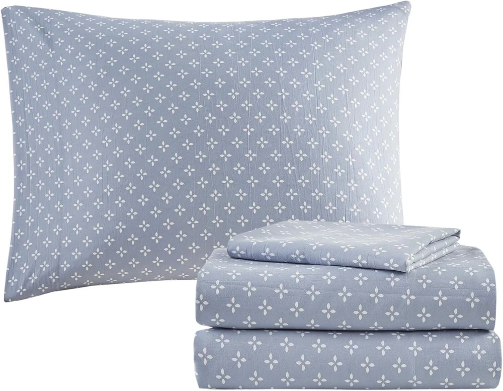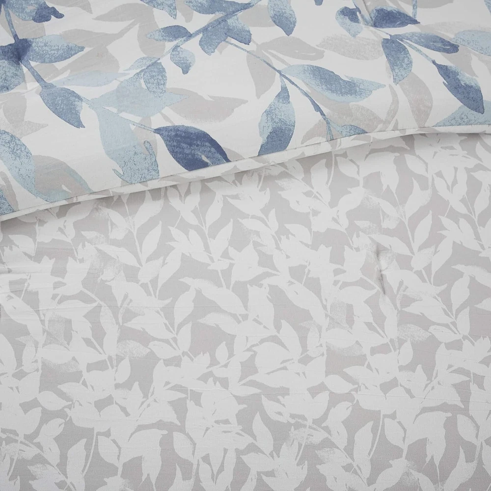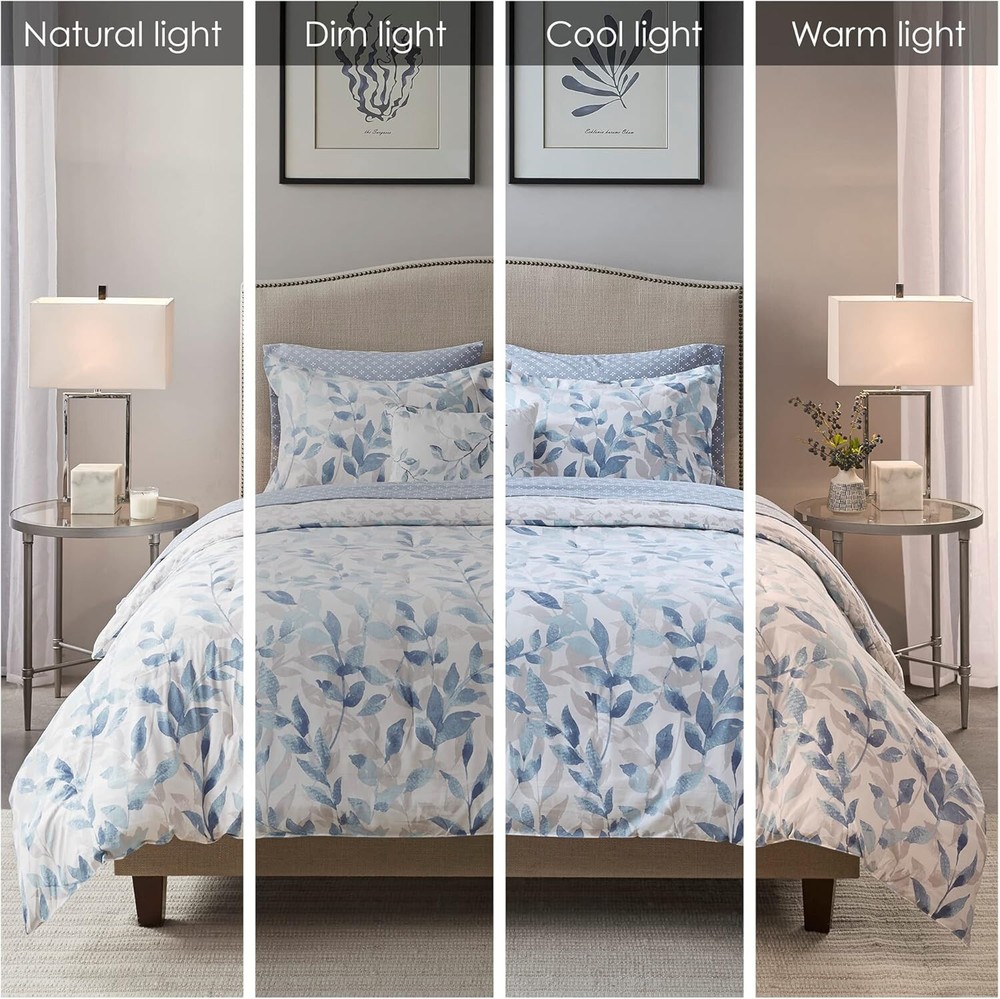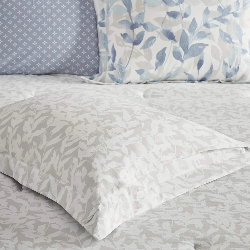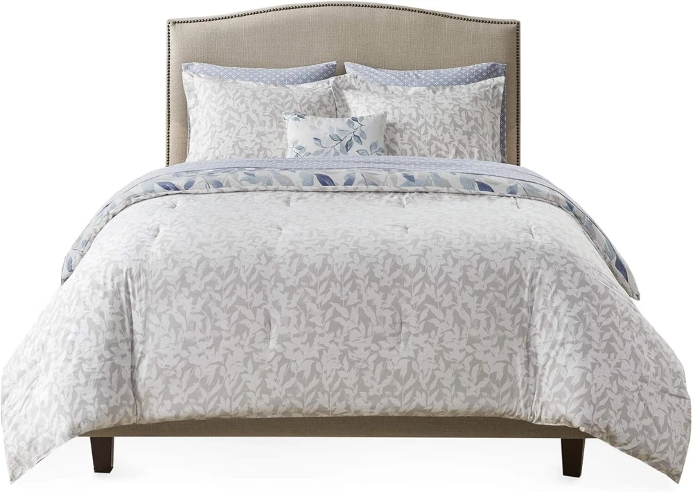 ***Item Description:*** S-275-B-086569299871 About this item 100% Microfiber The Madison Park Essentials Sofia Reversible Complete Bedding Set offers a beautiful update for your entire bed. A botanical print, in soft blue hues, adorns the face and the reverse of comforter, creating two distinct and stylish looks. The matching reversible shams (1 in Twin Sizes) coordinate perfectly with the comforter, while an oblong decorative pillow adds the finishing touch. This bedding set is also OEKO-TEX certified, meaning it does not contain any harmful substances or chemicals, ensuring quality comfort and wellness. Set includes: 1 Comforter: 90"W x 90"L, 2 Standard Shams: 20"W x 26"L + 2"D, 1 Flat Sheet: 90"W x 102"L, 1 Fitted Sheet: 60"W x 80"L + 14"D, 2 Standard Pillowcase: 20"W x 30"L, 1 Decorative Pillow: 12"W x 18"L Care instructions: Machine Washable, Spot Clean Pillow