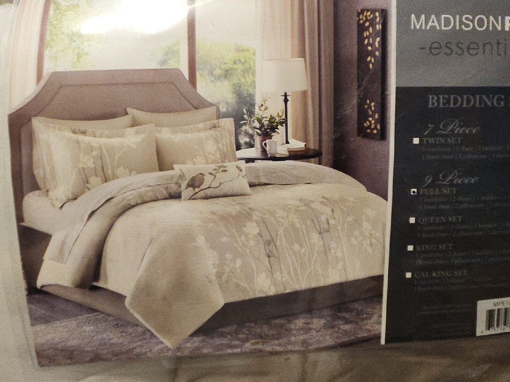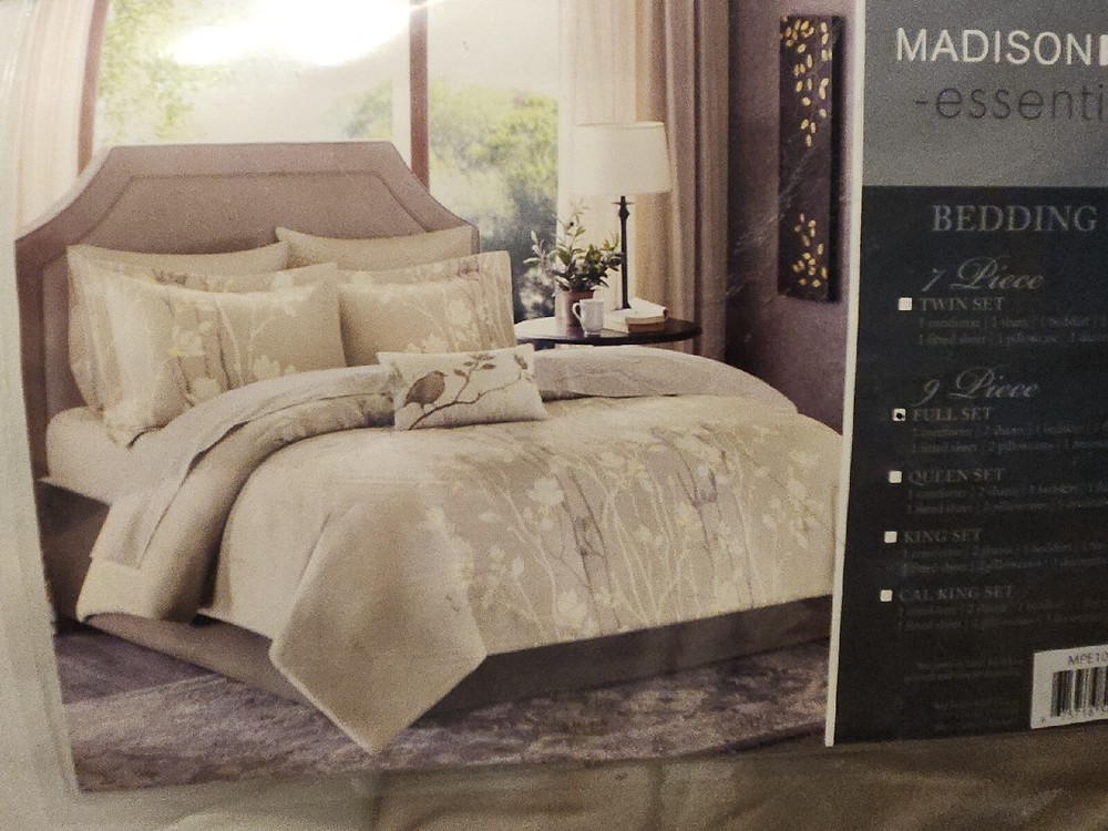 Madison Park Essentials Cozy Bed in A Bag Comforter with Complete Cotton Sheet Set - Trendy Floral Design, All Season Cover, Decorative Pillow, Vaughn, Taupe Full(78"x86") 9 Piece 100% Microfiber, 100% Cotton Sheets Vaughn Complete Comforter and Cotton Sheet Set brings luxury and beauty to any bedroom. This taupe comforter is covered in elegant white and brown floral tree branches with subtle yellow details. Set includes: 1 Comforter: 78"W x 86"L, 1 Fitted Sheet: 54"W x 75"L + 14"D, 1 Flat Sheet: 81"W x 96"L, 1 Decorative Pillow: 12"W x 18"L, 2 Standard Shams: 20"W x 26"L, 1 Bed Skirt: 54"W x 75"L + 15"D, 2 Pillowcases: 20"W x 30"L Care instructions: Machine wash cold, gentle cycle, and separately. Do not bleach. Tumble dry low,