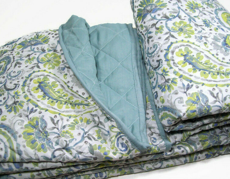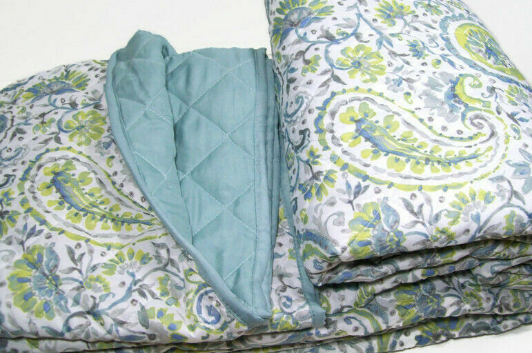 Madison Park Essentials Aqua Blue Paisley Thin King Quilt Two King Shams New Brand New in the Original Packaging THIS LISTING IS FOR THE ONE QUILT AND TWO KING SHAMS ONLY!! The size of this quilt is approximately 106 inches X 95 inches. The size of the sham is approximately 20 inches X 36 inches. Please see the listing's picture to see the design for the front and the back of this quilt. The pattern on the one side is paisley pattern is multi colors and on the other side is in an aqua blue color with grayish hue. The background color of this quilt is a white color to a slightly off white color. Please note that this pattern has a washed vintage weathered look. The faded washed uneven colors effects is part of the pattern. This quilt is made of 1 00% polyester . This quilt is machine washable. Please read and follow all warnings and or instructions included with the item before using!! All sales are final. The Item is as presented, listed & described to the best of my ability. Please email me with ANY questions prior to you placing a bid. PAYMENT: The Winning bidder must pay the invoice or make payment arrangement within 3 days (72 hours) of when the auction is over. If the winning bidder fails to respond or if payment is not received within 7 days, the item will be relisted or a second chance offer will be sent to the next highest bidder. PAYMENT MUST BE RECEIVED WITHIN 7 DAYS OF AUCTION END. We accept PayPal (credit cards accepted) SHIPPING INFORMATION Please use the shipping calculator (located on bottom right hand side of auction listing) to determine shipping costs. Please note that Parcel Post will take up to 14 business days for your item to be delivered from the shipping date! CONFIRMED PAYPAL ADDRESS ONLY! Please contact me if you want your item to be shipped to a different address. If you want Express Shipping, please contact me first to confirm the next available ship date. Combined Shipping Available Where Possible. Please contact me for shipping rate. I RESERVE THE RIGHT TO NOT SELL TO THE FOLLOWING BIDDERS: BIDDER WITH NEGATIVE FEEDBACK (More Than Three) PRIVATE PROFILES PLEASE CONTACT ME IF YOU HAVE ANY QUESTIONS BEFORE THE TRANSACTION AND / OR AFTER THE TRANSACTION USING THE CONTACT SELLER BUTTON. PLEASE DO NOT CONTACT ME USING OUTSIDE E-MAIL. I DO NOT ACCEPT RETURNS! The only exception is that if I made a mistake in my listing. FEEDBACK POSITIVE FEEDBACK IS GREATLY APPRECIATED IF YOU ARE SATISFIED WITH THE TRANSACTION. IF YOU ARE FOR ANY REASON NOT SATISFIED AND ARE CONSIDERING LEAVING NEUTRAL OR NEGATIVE FEEDBACK, PLEASE CONTACT ME FIRST TO SEE IF I CAN HELP. I ALWAYS LEAVE FEEDBACK TO CONCLUDE THE TRANSACTION! I AM NOT IN ANY WAY AFFILIATED WITH POTTERY BARN OR WILLIAMS SONOMA!